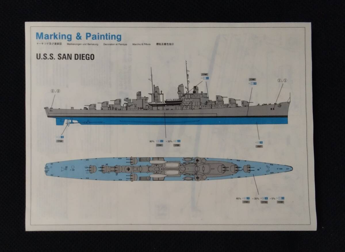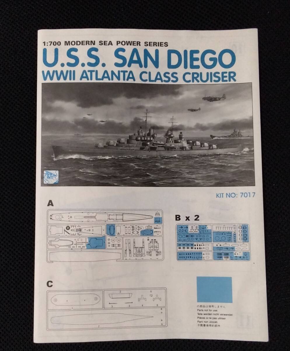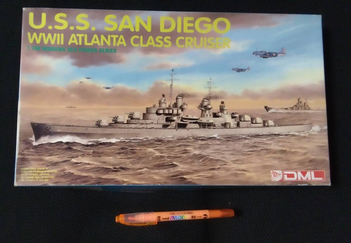 ドラゴン1/700スケール、アメリカ海軍軽巡洋艦”サンディエゴ”のプラモデルです。