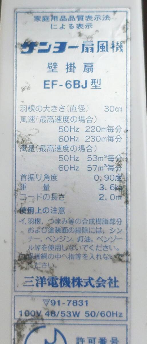 レトロ●SANYO/サンヨー《壁掛け扇風機》EF-6BJ | |||
