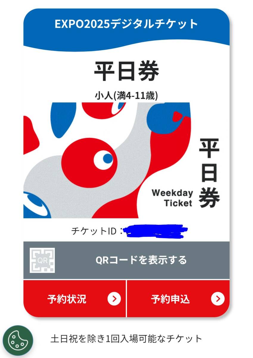 日時指定なしの大阪・関西万博の平日の小人チケットです。