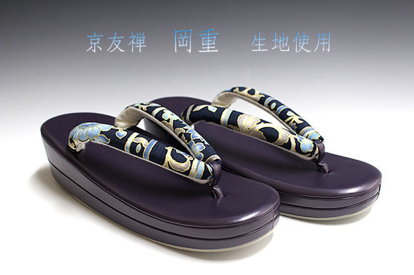 新作!!お洒落!!京友禅 岡重 生地使用 小判型 草履 フリーサイズ J4 紫