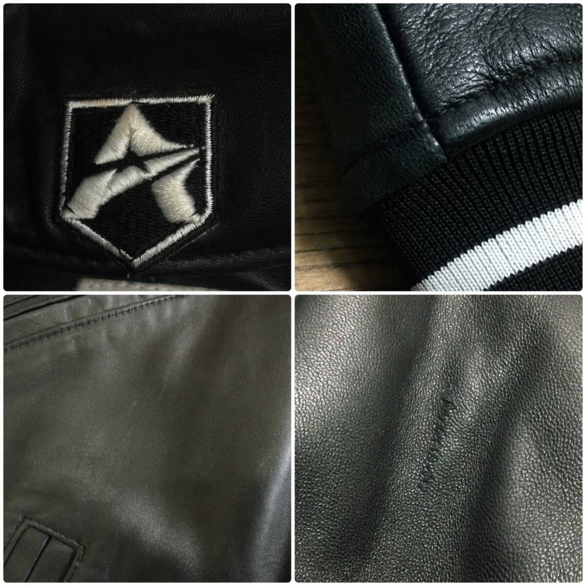 | 商品説明 | ・AVIREX「SIGNATURE VARSITY JACKET」レザージャケット。<BR>・COPYRIGHT AVIREXタグ付きの90s本革モデル、ブラックのヴァーシティジャケットです。<BR>・インナーにKAJUKEMBO(少林寺)関連のデザインが施された、詳細不明の謎多き一着。<BR>通常流通ではほとんど見られない仕様で、コレクター心をくすぐる希少アイテムとなります。 ・金具とジッパーに曇りやサビや傷等ございます。(画像8枚目をご確認下さい) ・ワッペンに汚れがございます。(画像9枚目をご確認下さい) ・レザーが白くなっている所とがれている所がございます。(画像8,9をご確認下さい) |