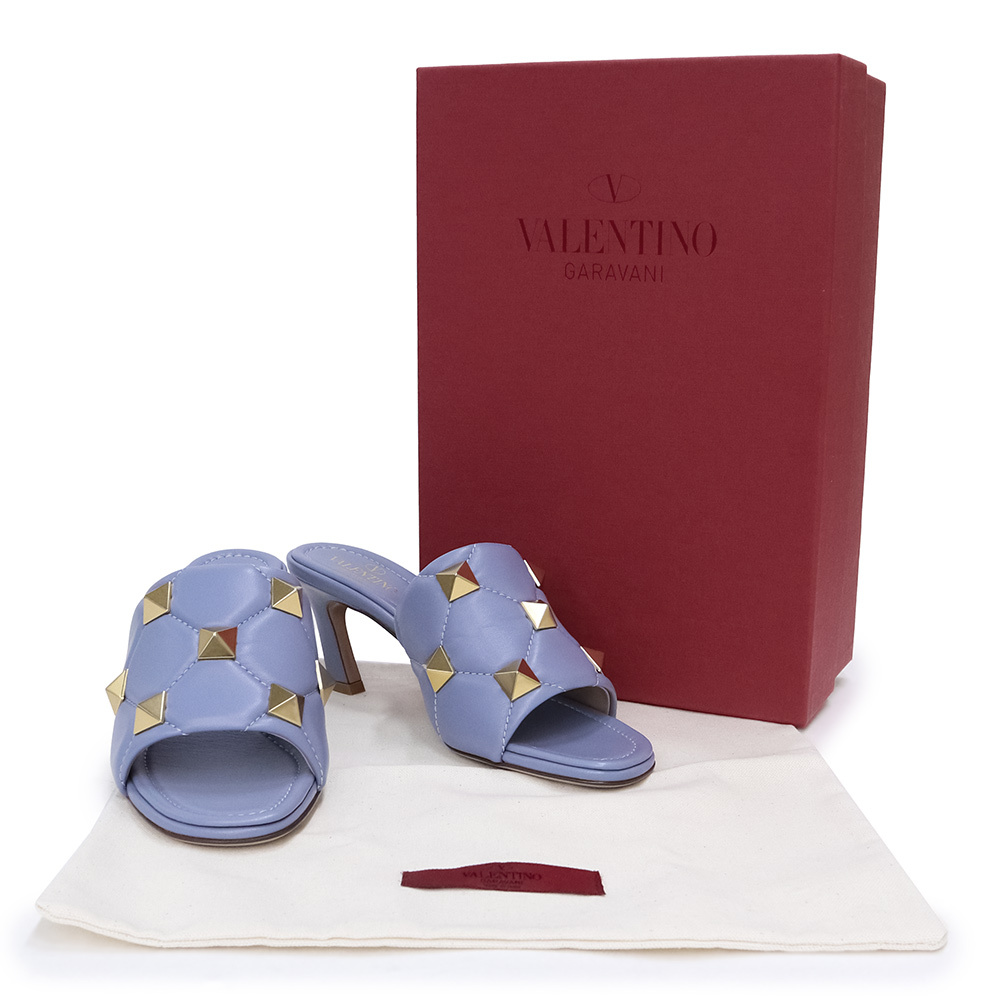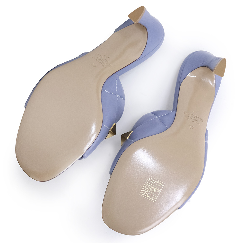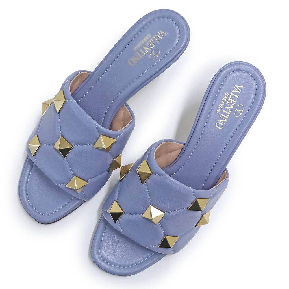(新品・未使用品)ヴァレンティノ ガラヴァーニ Valentino Garavani ローマンスタッド スライド #37 24cm 靴 サンダル レザー 青 WW2S0BK3