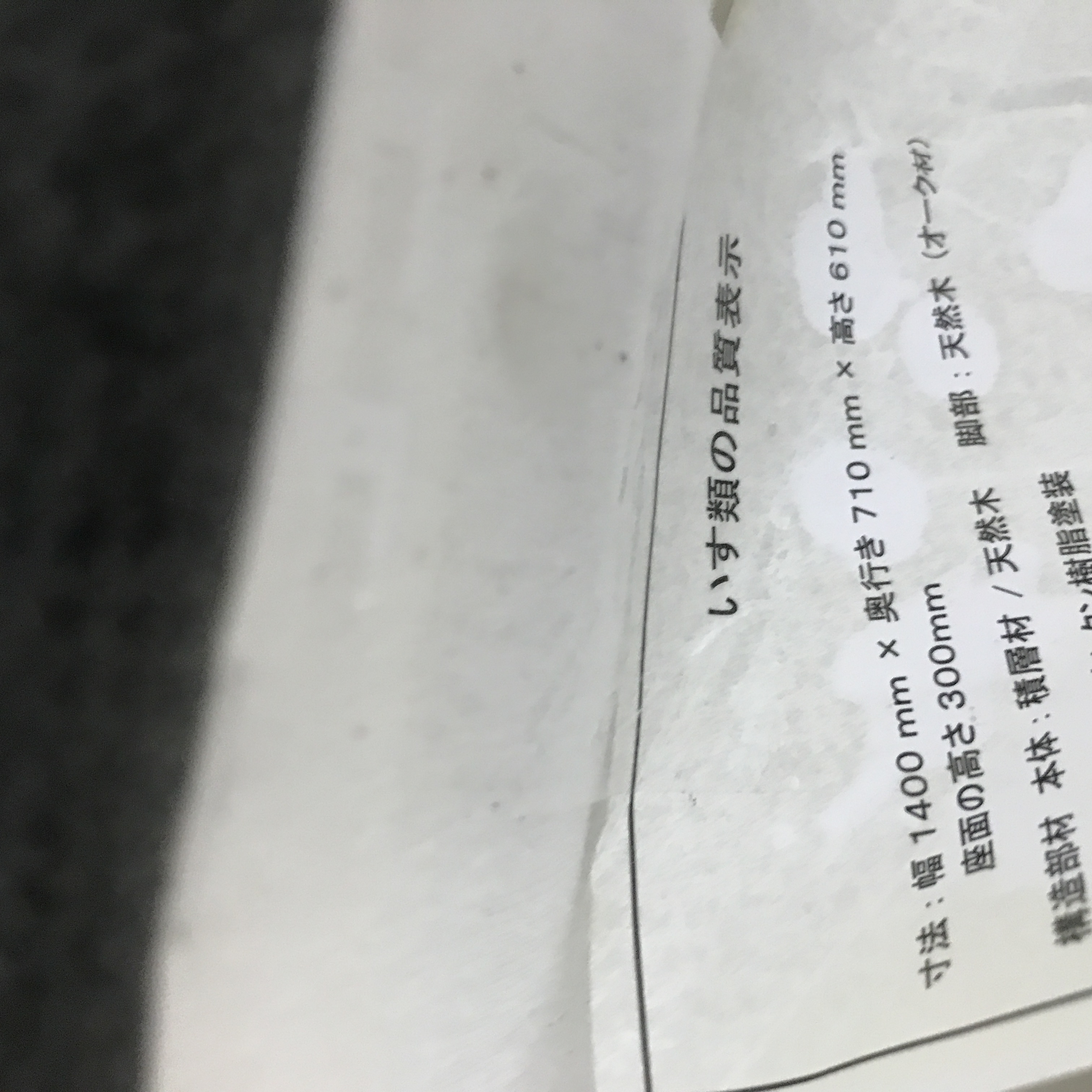 | 座面と背もたれに汚れがあります。 脚にすり傷や削れがあります。 ラベルがはがれています。 隙間に取りきれないほこりが残っています。 | ||||||||||||||||||||