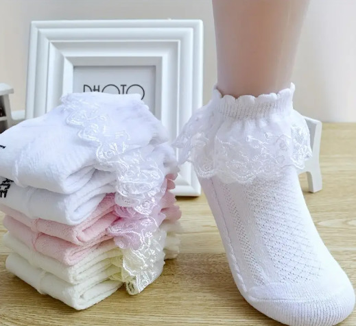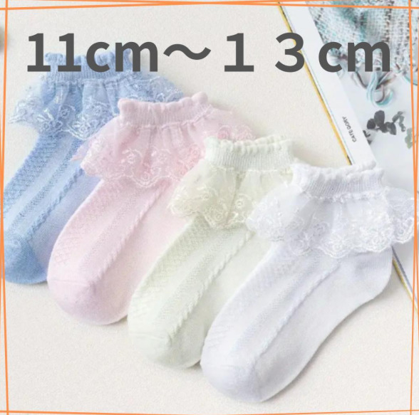 柔らかい編み物のレース付きキッズ靴下、カラフルな4色展開。