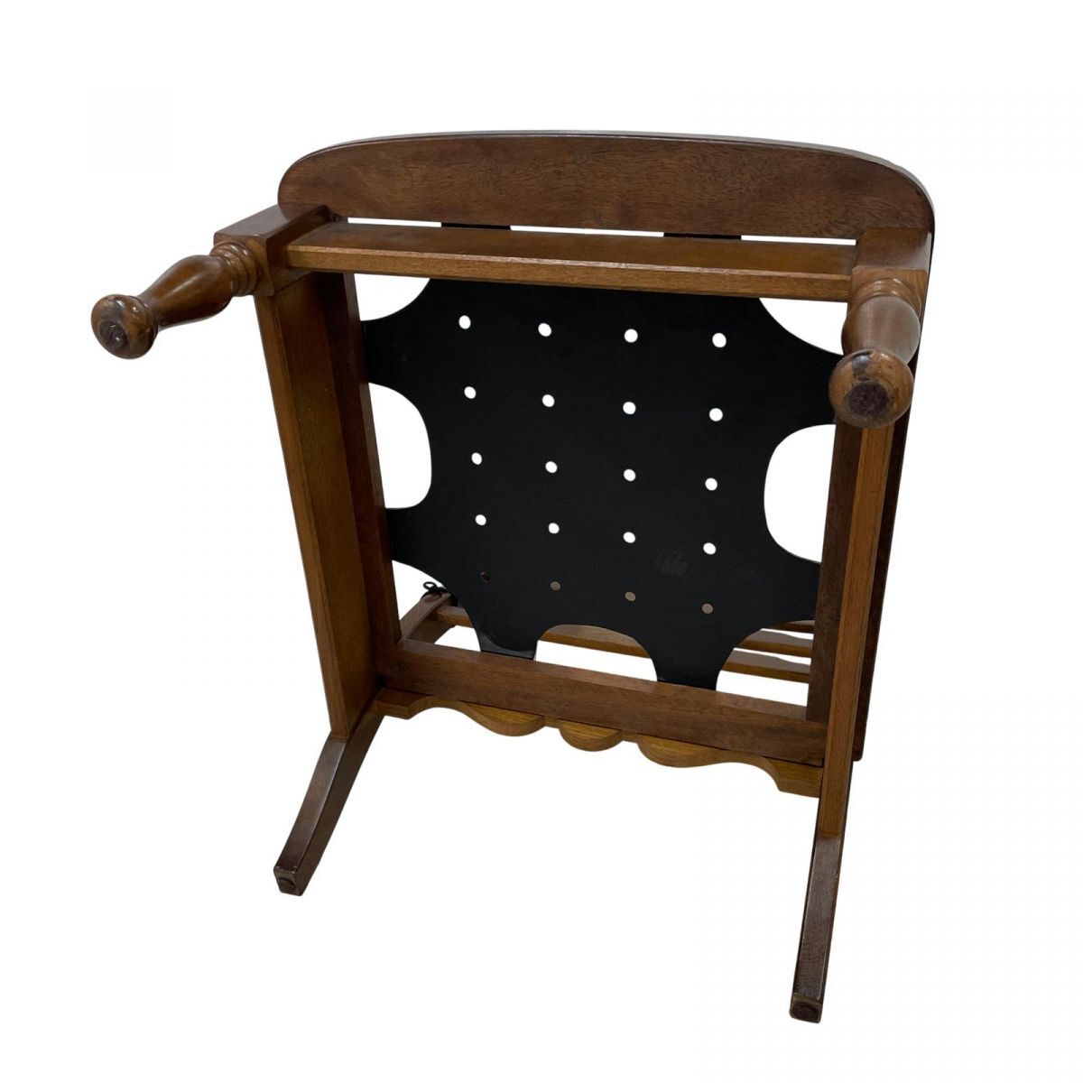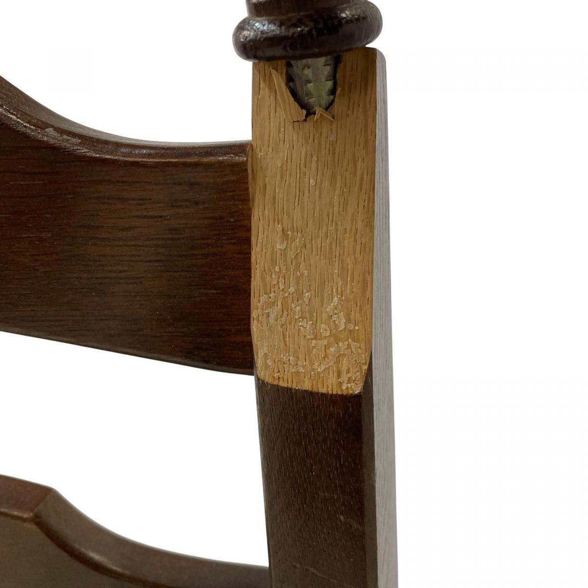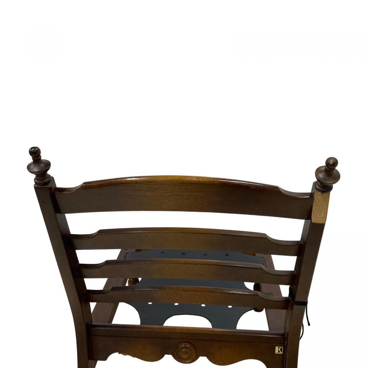 背もたれ上部右のパーツの取り付け部分が破損しております。 破損パーツはありません。 背面の左右ともに亀裂が入ってしまっているためジャンク品となります。 紐で補強している状態です。 | ||||||||||||||||||||