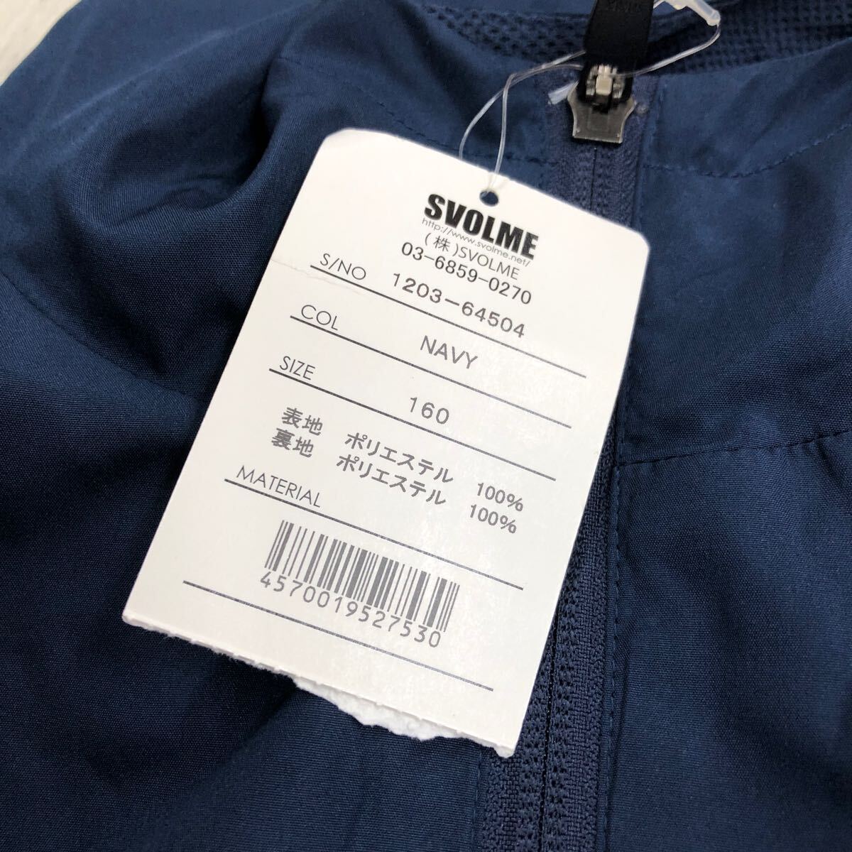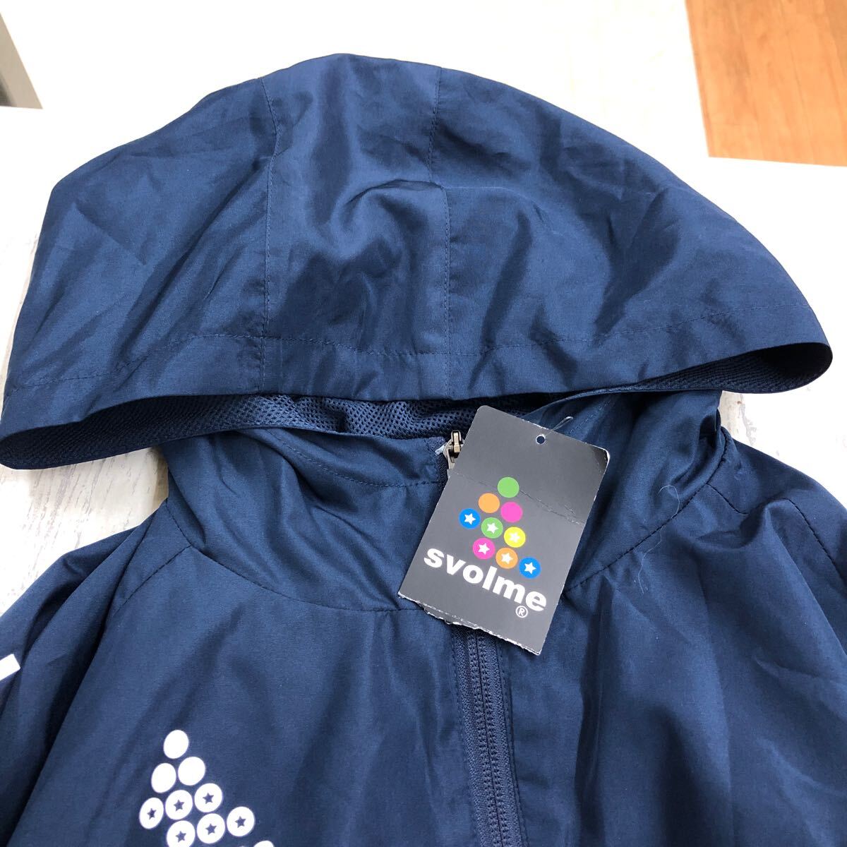 未使用 SVOLME スボルメ ウィンドブレーカー サイズ160 フードジャケット ジップアップ ロゴプリント 203-64504 ネイビー キッズ YF566