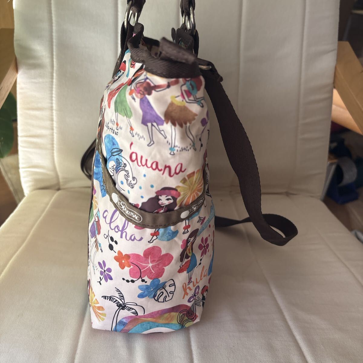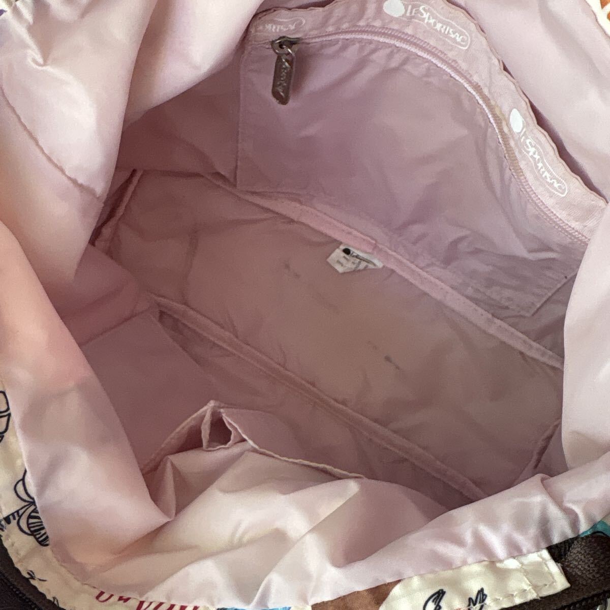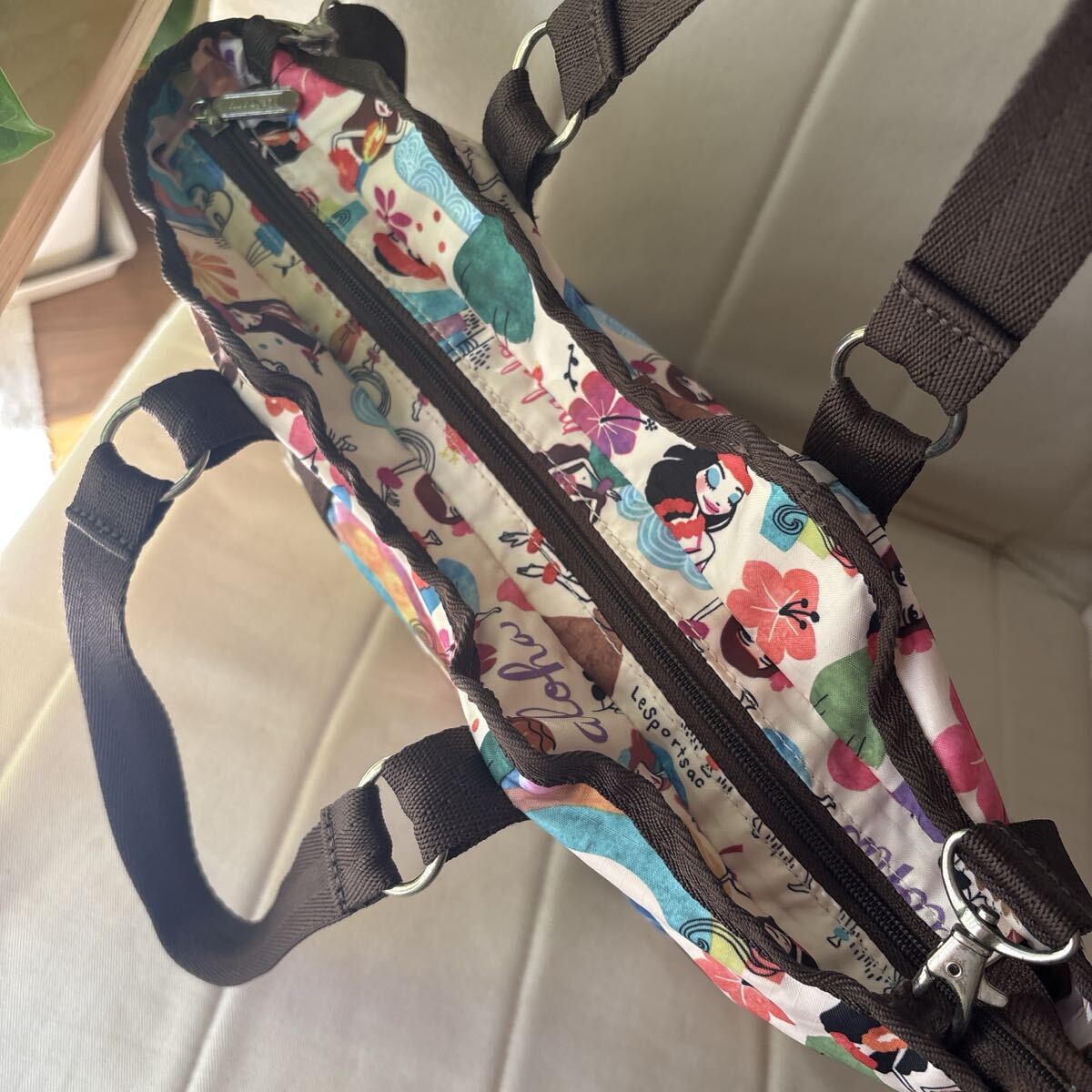 上部ファスナー開閉、両サイドにミニ水筒などが収まるポケット付き、内側にもファスナー開閉のポケットとオープンポケットが付いているので貴重品の収納にも安心です。