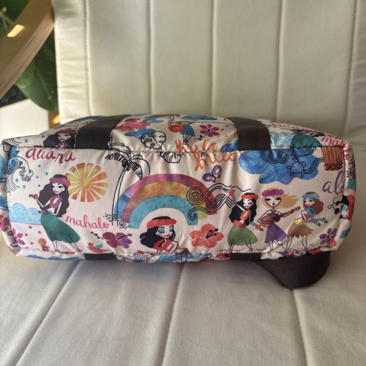 ハワイの海やフラガールなどが描かれている楽しいデザイン