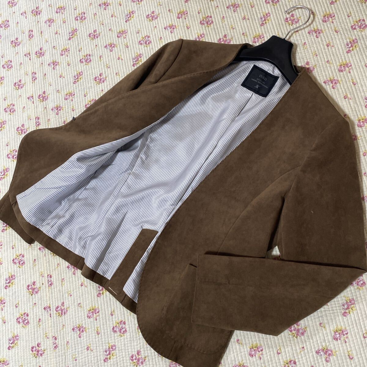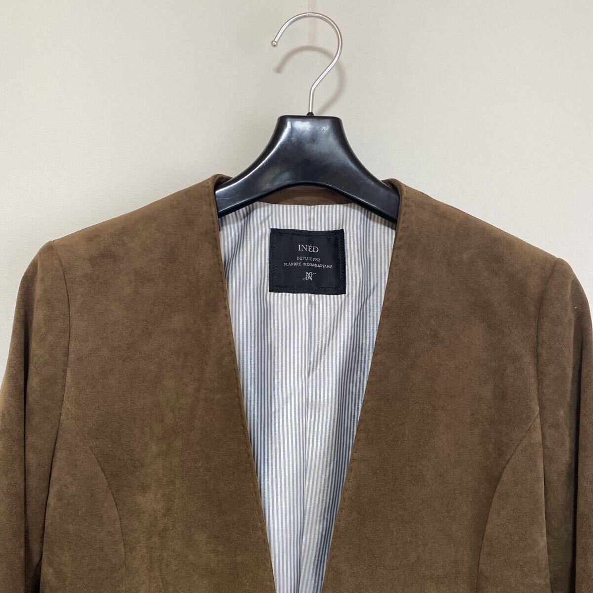 【極美】イネド Vカラー 11 ノーカラージャケット ブラウン スエード DMW
