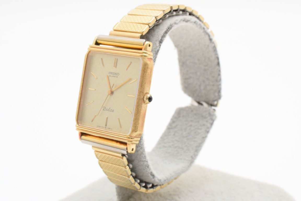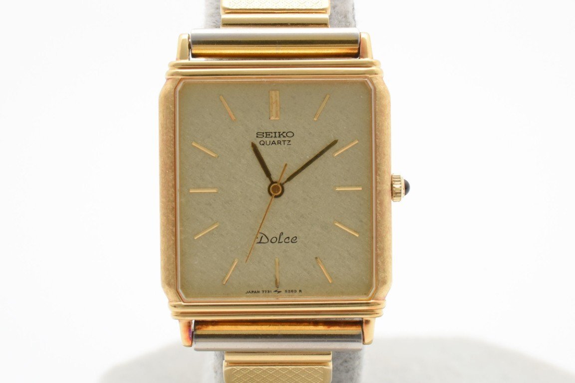 SEIKO セイコー DOLCE ドルチェ 7731-5230 ゴールド スクエア 金文字盤 蛇腹ベルト 3針 レディース クォーツ 腕時計