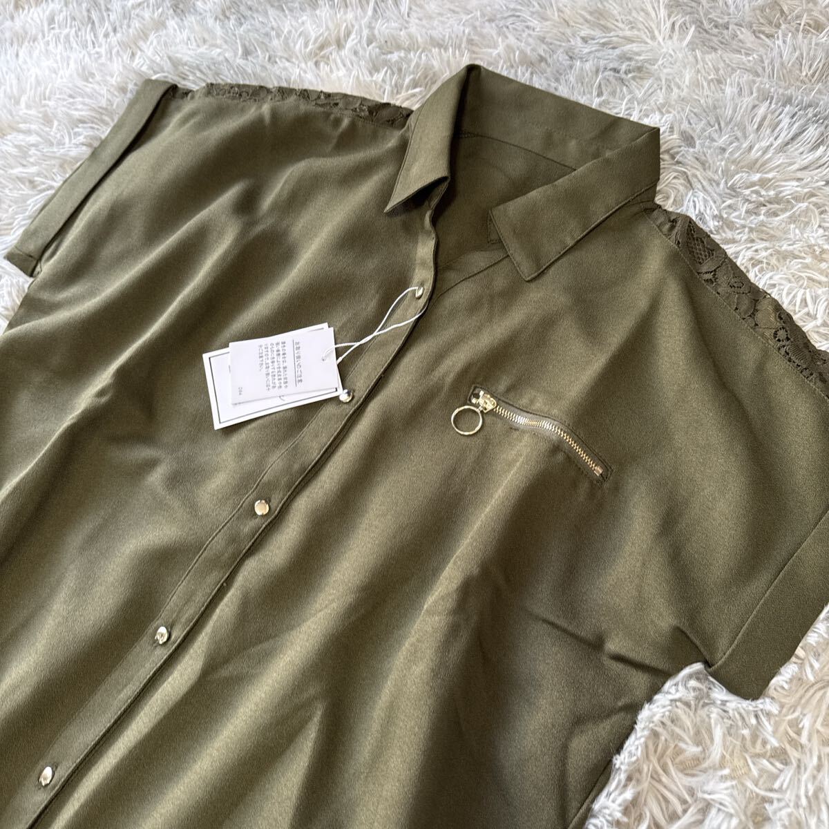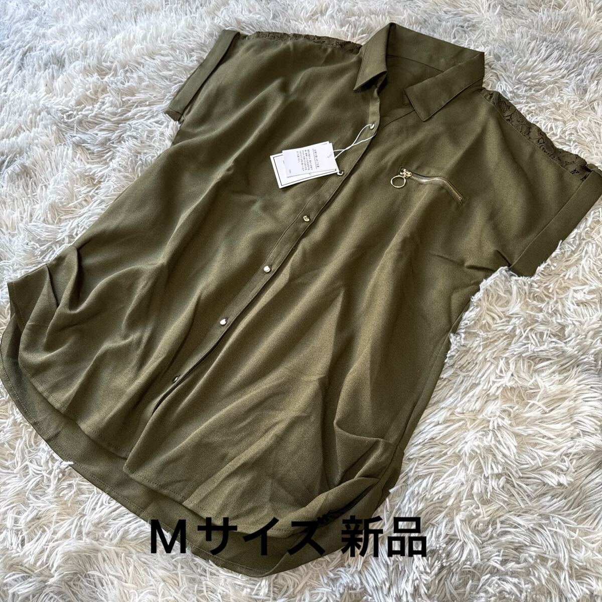 部分レースリングジップ半袖ブラウスカーキです。 未使用タグ付きです。 自宅保存なので細かい事を気になさる方は ご入札を避けて下さいね♪ サイズはMサイズです。 平置きで身幅54センチ 着丈73センチ 素人なので多少の差はご了承ください。 品質は複合繊維ポリエステル100% レース 綿70% ナイロン30%です。 実際のお色と画像は光の具合により 多少異なる場合があります。 | |||