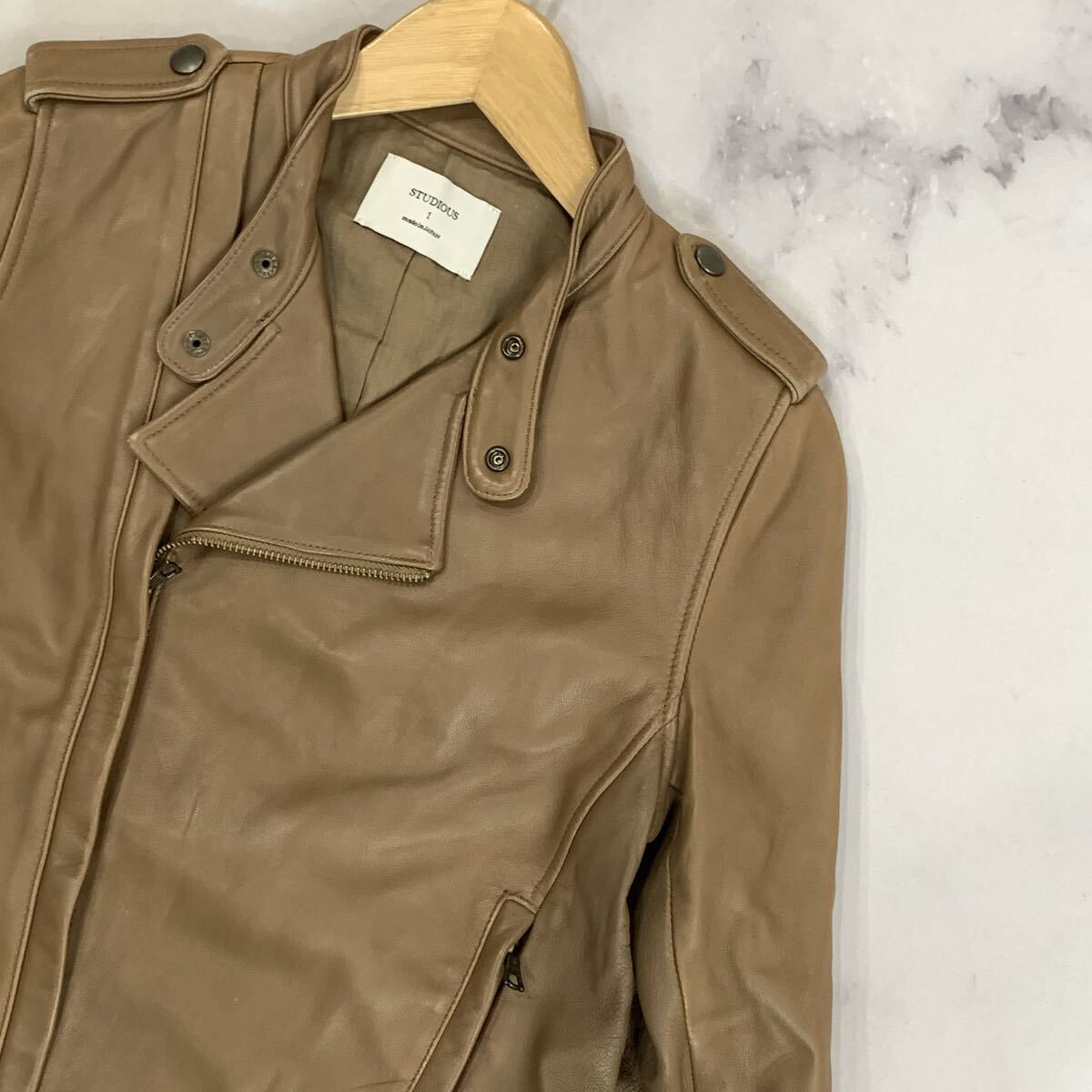 Z ▼ 日本製 'シープスキン' STUDIOUS ステュディオス 羊革 ライダースジャケット / レザージャケット 1 レディース 婦人服 アウター