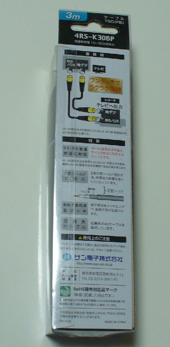 品名 | ★未使用品*4K 8Kアンテナ用TV接続ケーブル75Ω 4C低損失ケーブル(4RS-K30BP)3m ★未使用品ですが、バッケ-ジに汚れ、痛みなどが多少ございます。 細かいことを気にになさる方のご入札をお断りいたします。 ★未使用のため、万が一、破損・不良品の場合、こちらでの責任は負いかねます。 直接、メーカーへお問い合わせするようにお願いいたします。 |