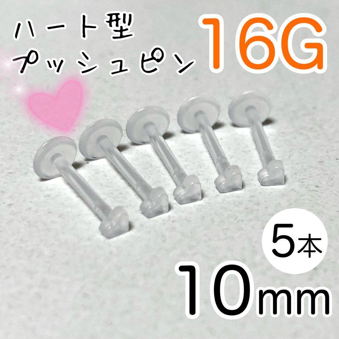 5本セット 16G ハート型プッシュピン 樹脂ピアス 長さ10mm 透明