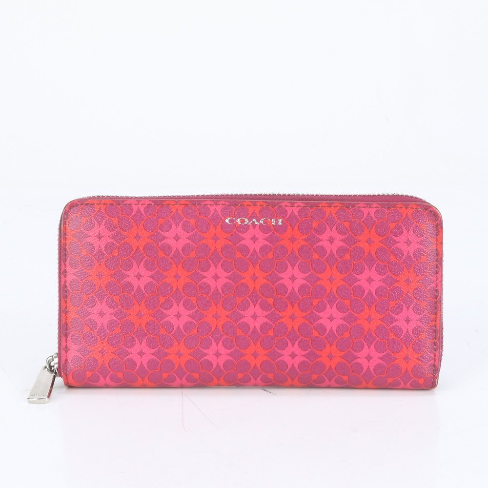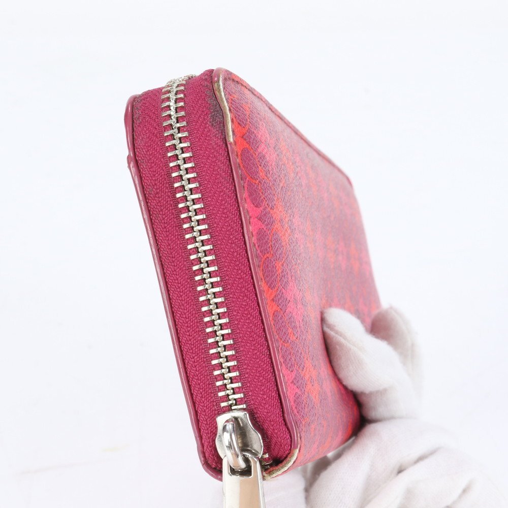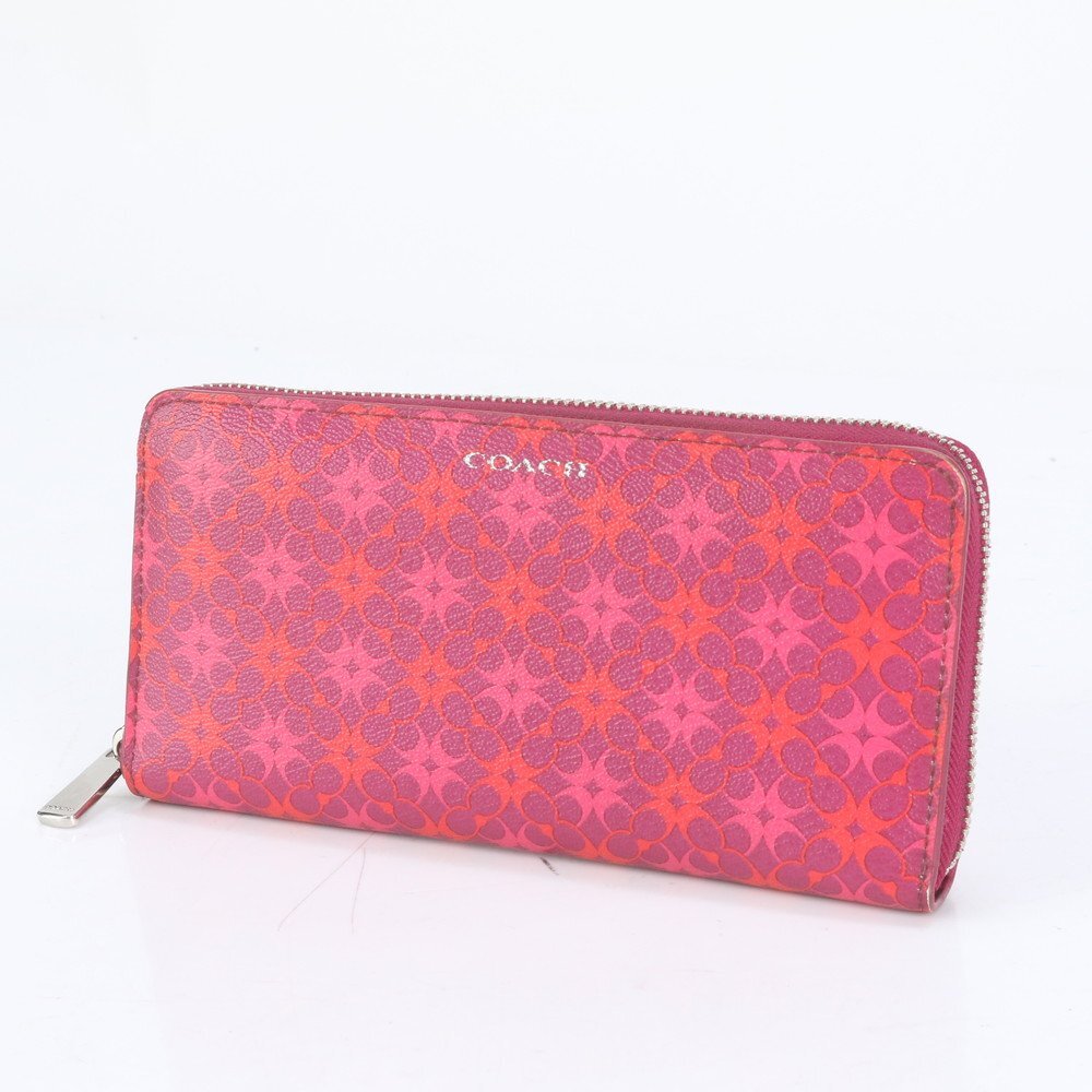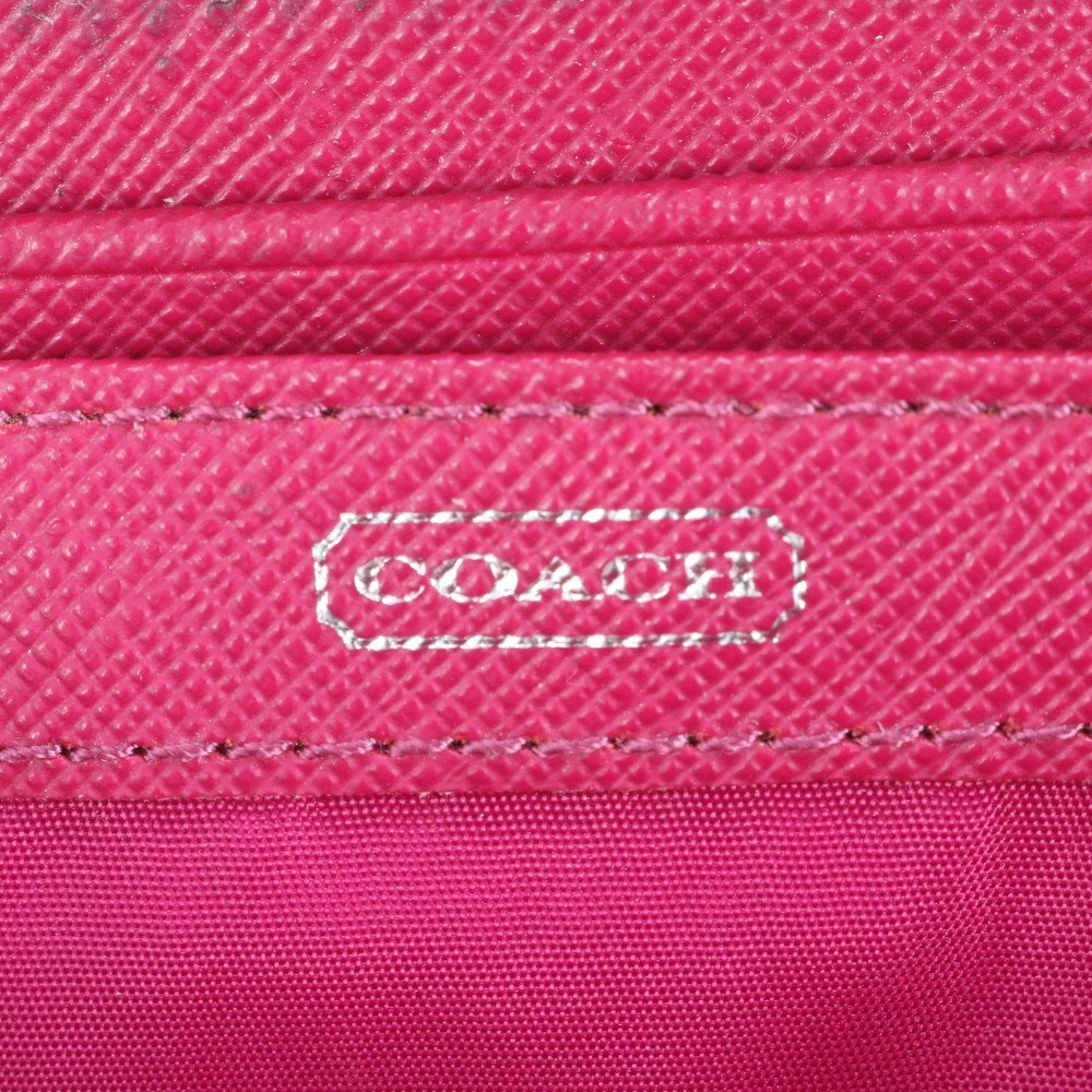 1円■美品■コーチ■シグネチャー レザー 長財布 ロング ウォレット ラウンドファスナー 二つ折り ピンク レディース RUE CK28-5