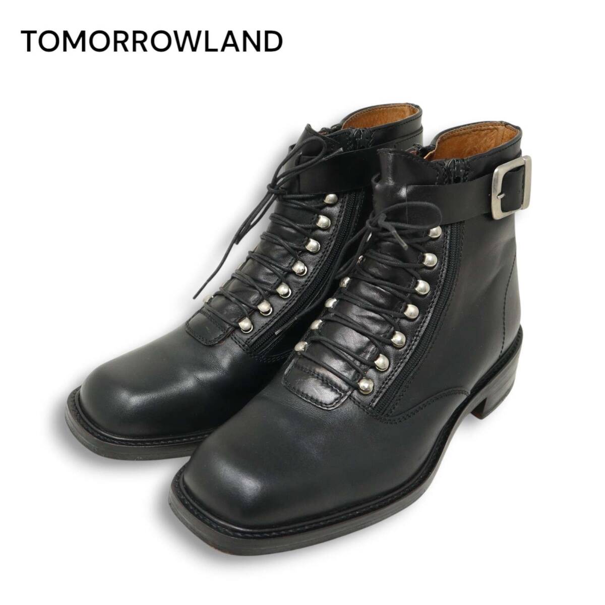 TOMORROWLAND トゥモローランド 秋冬★ レザー サイドジップ レースアップ ブーツ Sz.8 1/2 メンズ 黒