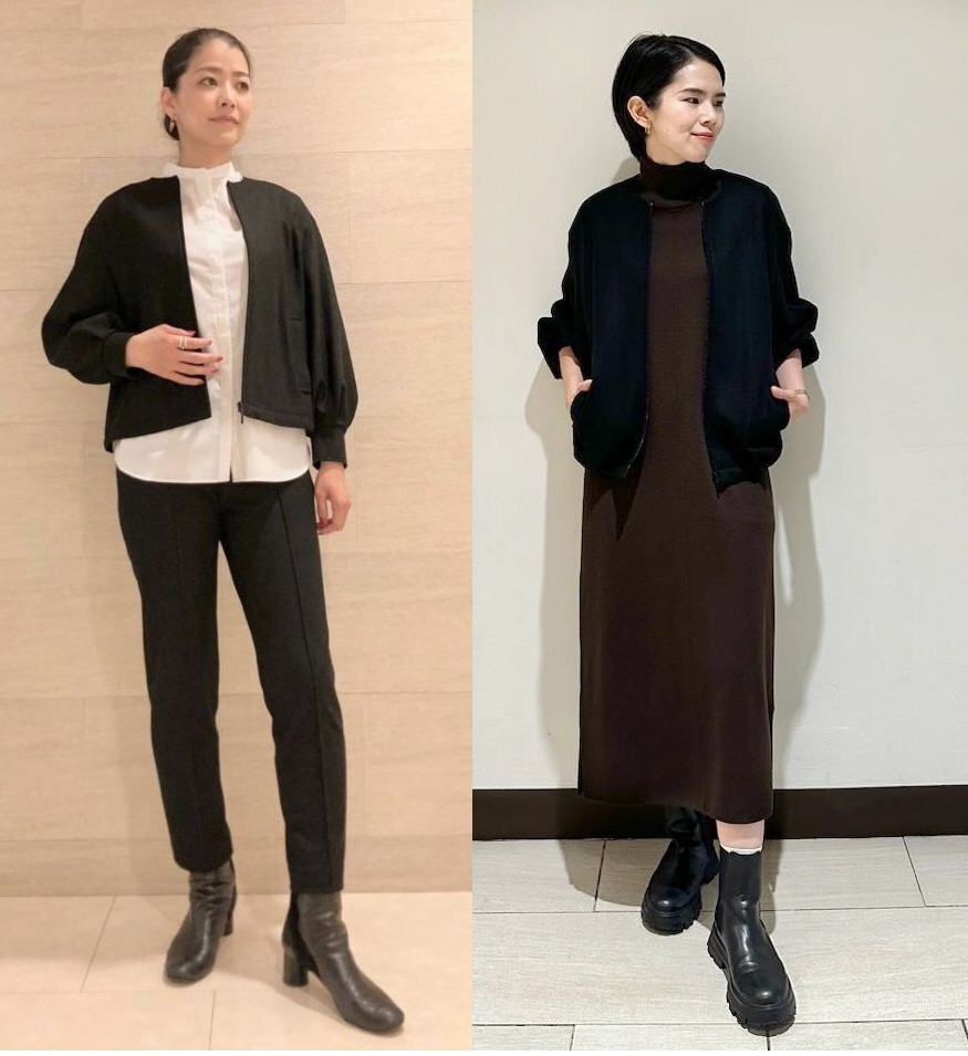 コンパクトでどんな丈感の洋服とも合わせやすいブルゾンは、裾のフィットを両サイドで好みに調節できる優れもの。