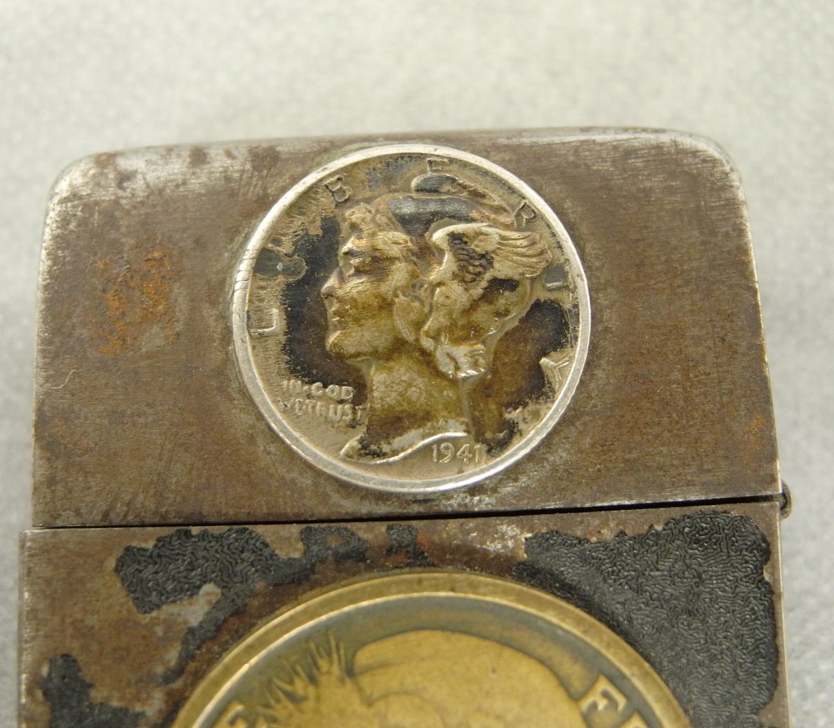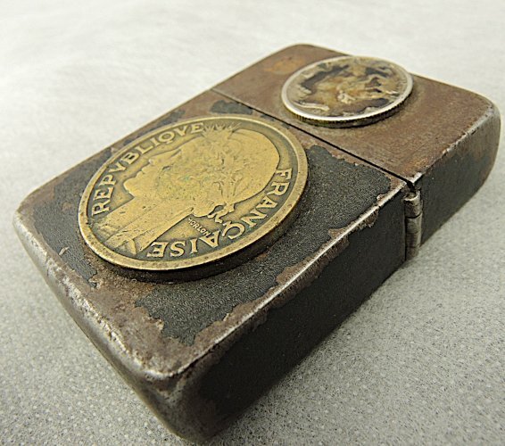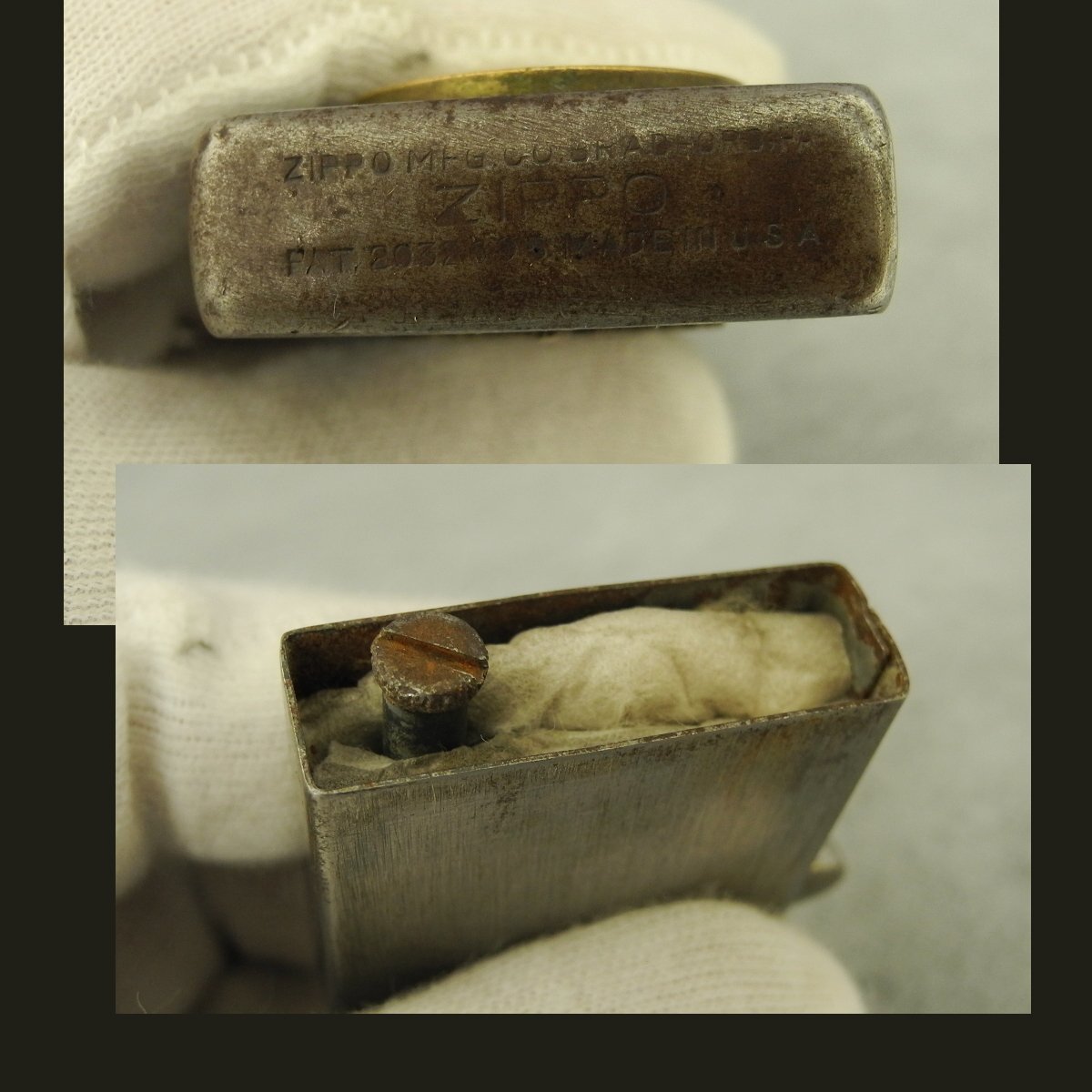 Zippo Black Crackle ジッポ ブラッククラックル 4バレル 水平歯 船底 ボトムPAT.2032695 ユニット不明 コイン付き 中古 現状お渡し