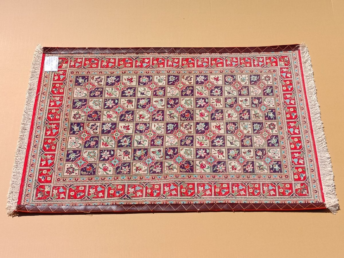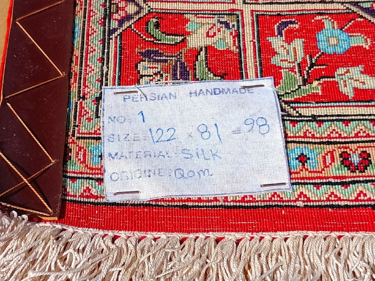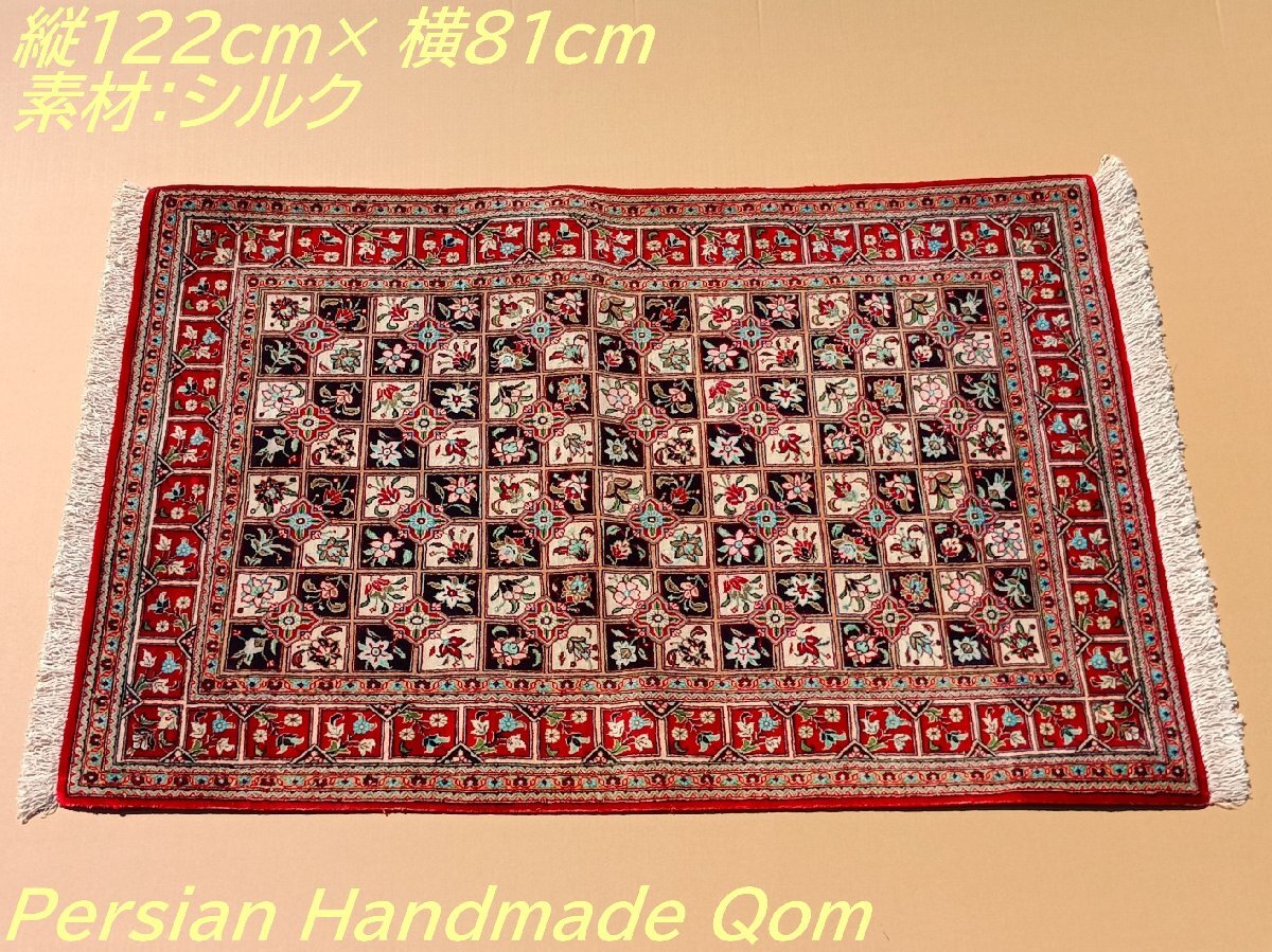 ◎Persian Handmade◎【ペルシャ絨毯 フリンジ付き クム コム 122cm×81cm カーペット ラグ マット 敷物 シルク 絹 高級品 海外製】Q10039