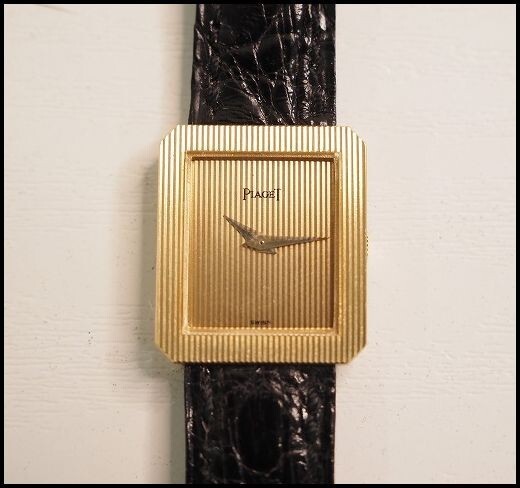 Piaget ピアジェ 750刻印 重量約18.3g レクタンギュラー 手巻き 腕時計 レディース ゴールドカラー 1121b