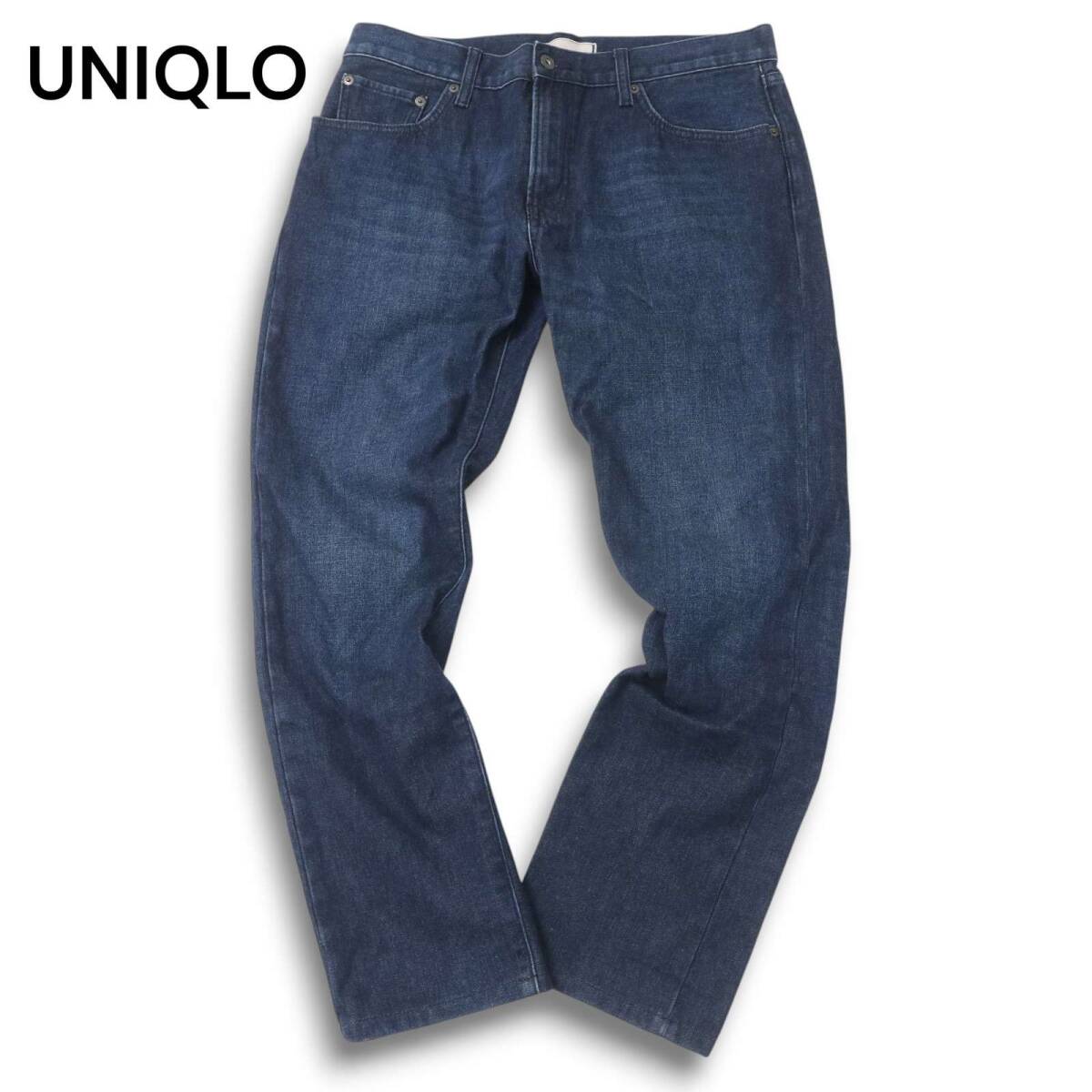 UNIQLO ユニクロ 秋冬 防風ジーンズ★ USED加工 レギュラーフィット テーパード デニム パンツ ジーンズ Sz.84 メンズ