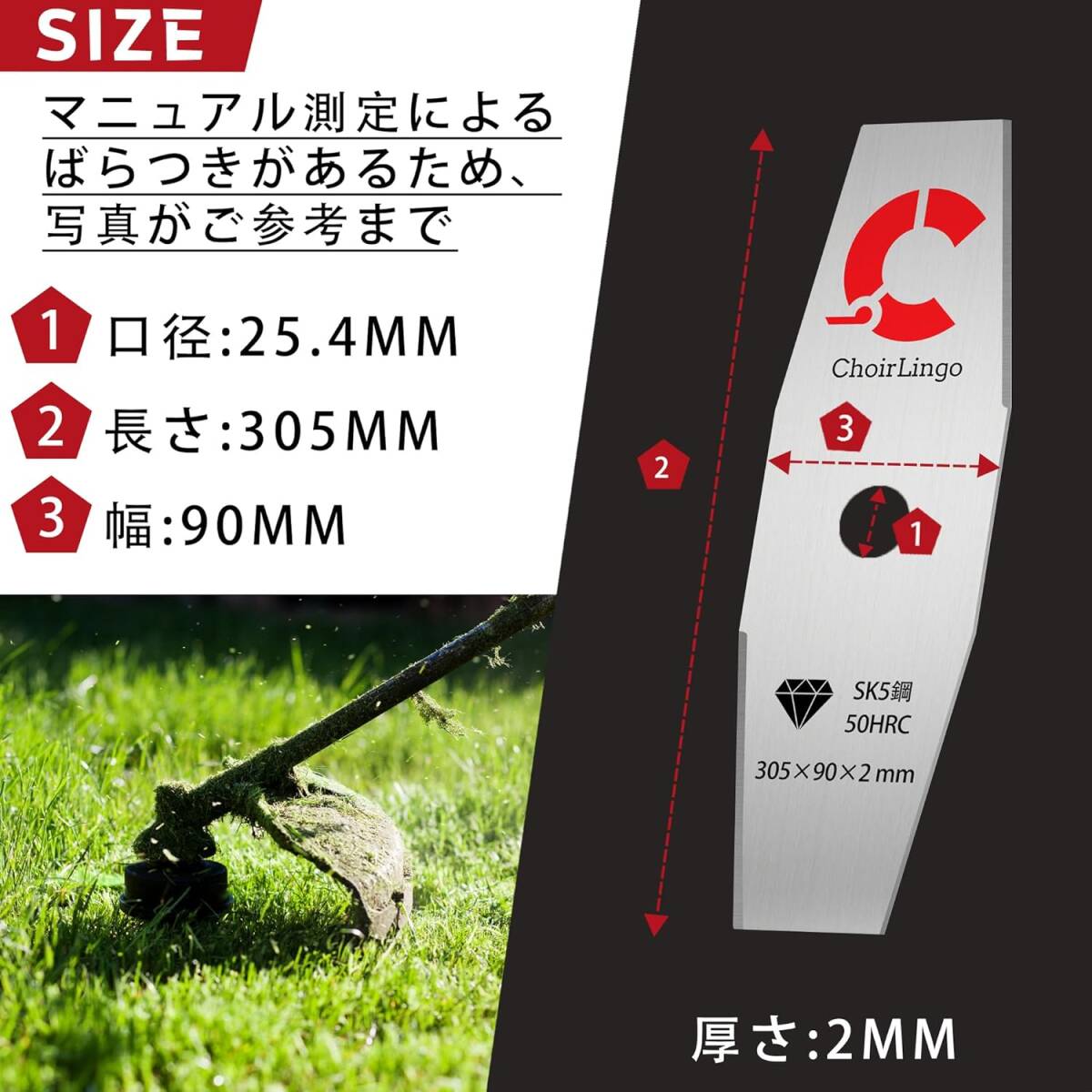 • 【高耐久性SK5鋼製】当社の草刈り機替え刃は、市場の一般的な製品よりも硬度が高く、優れたSK5鋼を使用して製造されています。石に幾度となく衝突しても摩耗が少なく、長期間にわたり使用可能です。