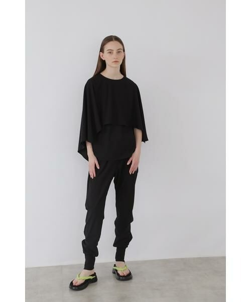 ポンチョがレイヤードされた様なデザインジャージートップスです。