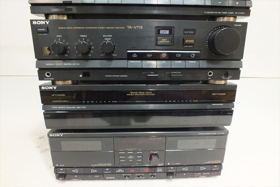 ◆商品◆ メーカー---------SONY ソニー 型式-------------PS-V705 TC-V715 SEQ-V715 ST-V715TV CDP-V715 TA-V715 SS-V715AV 付属品-----------画像に写っているものがすべてになります。 ◆外装ランク◆ 【 C 】 ◆状態◆ 中古品の為キズや汚れなどの使用感はご容赦ください。 全体的にキズ、スレあり アンプ音出し確認済み。 カセットデッキは通電しますが、一時停止のランプが点滅しており、内部で異音がします。動作出来ませんでした。 CDはトレイが開きません。 ターンテーブル通電しませんでした。 スピーカー音出し確認済みです。 現状品での出品となります。 調整やメンテナンスが必要となります。 【重要】配送送料と送料に送料が0円と表示される場合がございますが、出品画面に記載の送料が落札後にご精算されます。 |