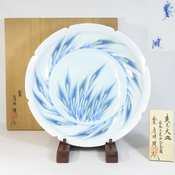 こちらは 大作! 有田焼 晩香窯 日本工芸会正会員 庄村健 麦文 大皿 径50cm 重さ4.5kg 共箱 です。