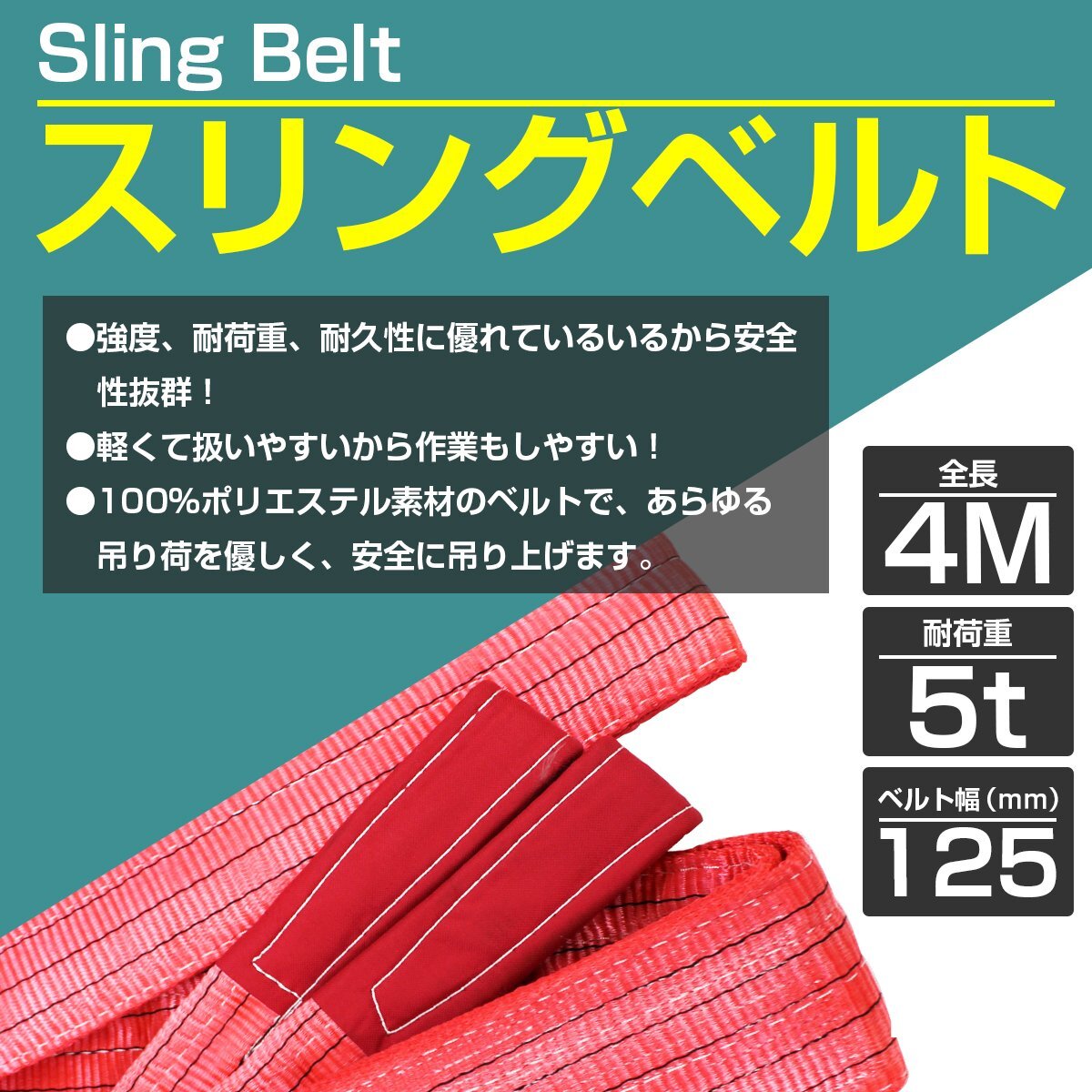 [1本/耐荷5t/長さ 4m] スリング ベルト 吊上げ ナイロン クレーン ロープ 荷吊り 玉掛け 牽引 運搬 5000kg 5トン 幅125mm