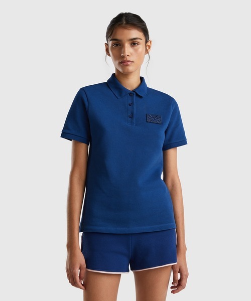 「BENETTON (UNITED COLORS OF BENETTON)」 半袖ポロシャツ LARGE ネイビー レディース