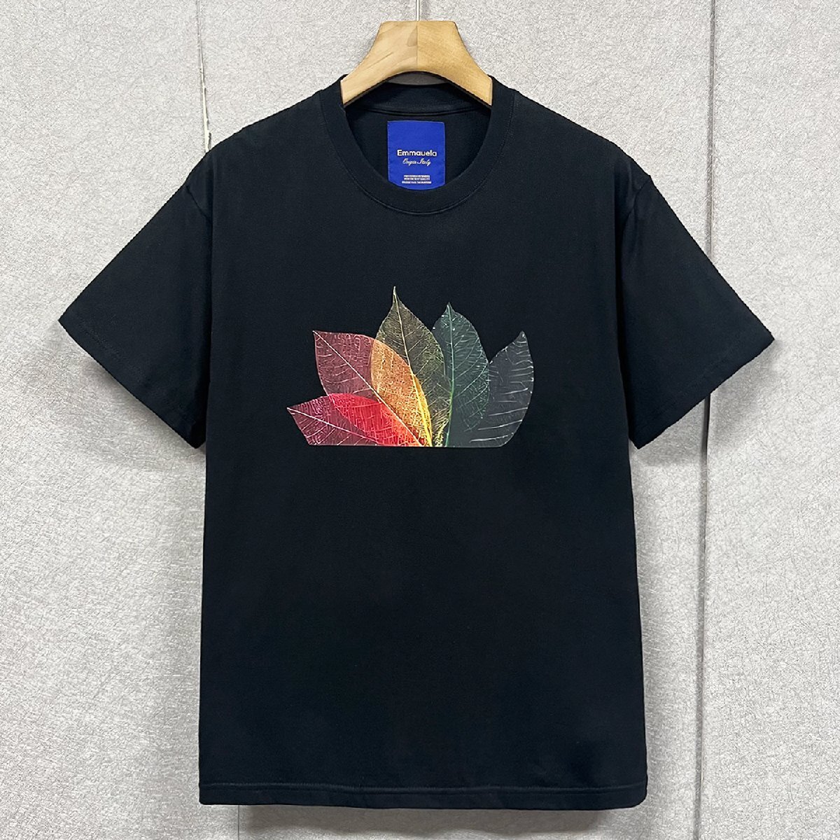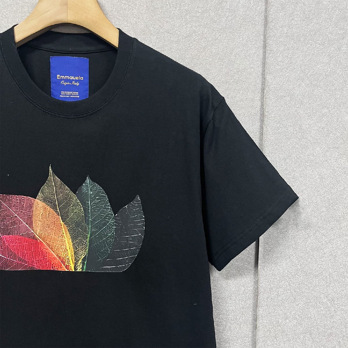 人気・半袖 Tシャツ 定価2万◆Emmauela・イタリア・ミラノ発◆綿100% 吸汗 耐久 快適 葉柄 シンプル クルーネック トップス 夏 M/46サイズ