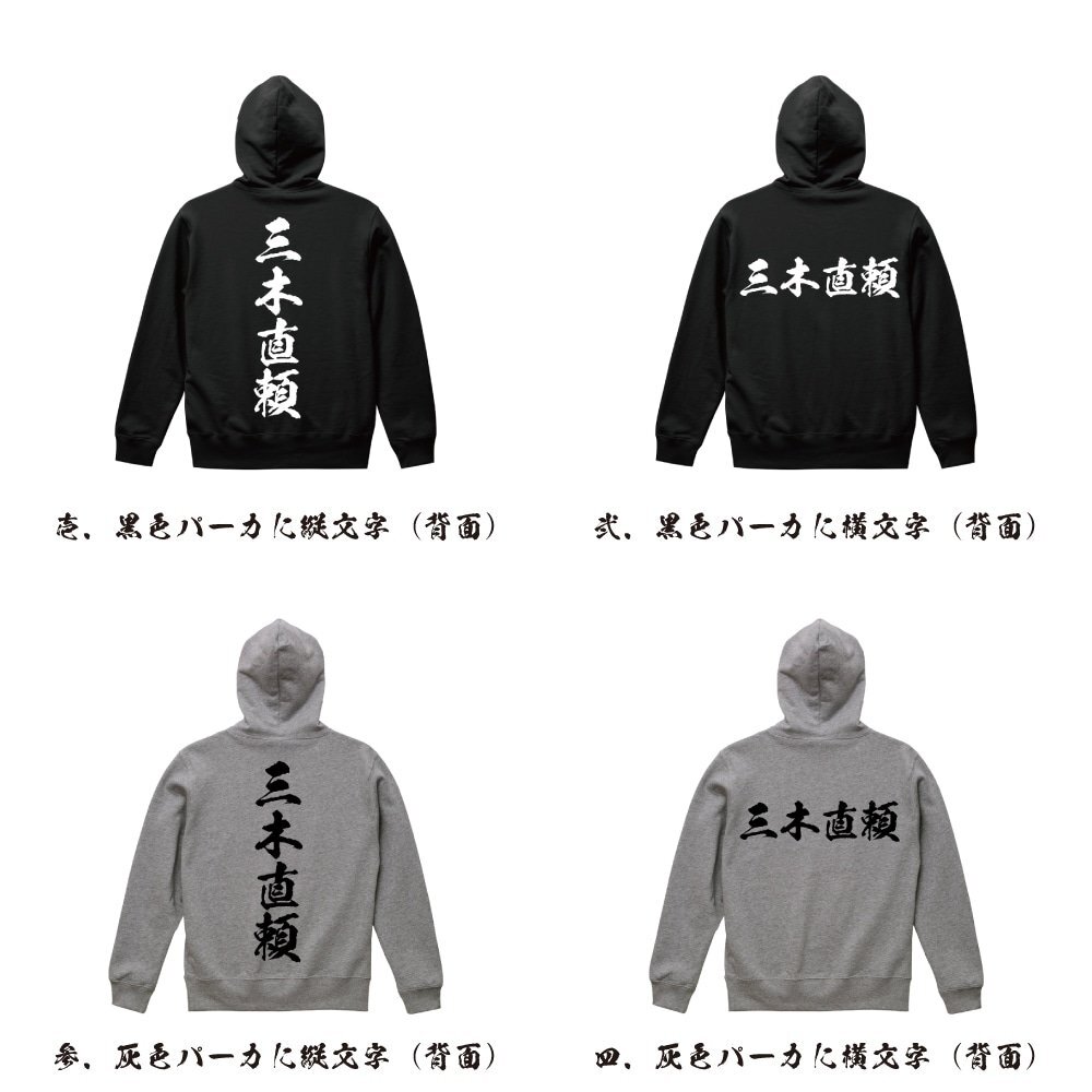 三木直頼 (みきなおより) オリジナル パーカ 書道家が書く プリント フルジップ パーカー S M L XL XXL 110 130 150 【 戦国武将 】