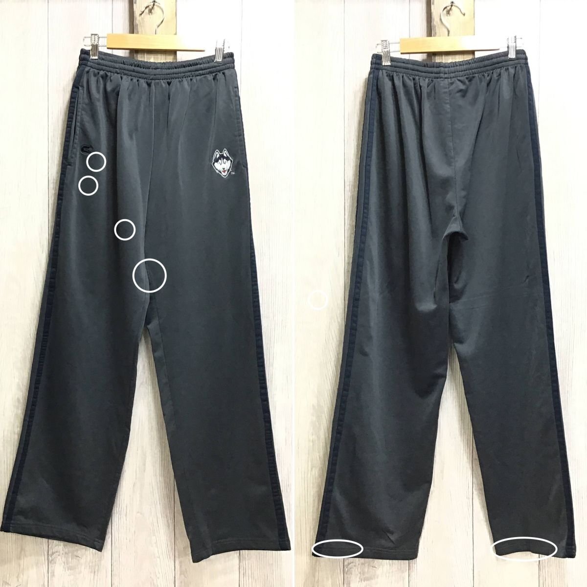 合計落札金額¥8,000円以上で、、、 送料無料!! ※こちらからの[合計支払い金額通知]をご確認の上、お支払い下さい♪ -------------------------------- 【 colosseum 】 刺繍ロゴ サイドライン ジャージ トラックパンツ ● USA輸入・正規品 ● ● 海外サイズ規格 ● ● ポケット( 左右:有・ヒップ:無 )● -------------------------------------------------------- ◆ ◆ 商品説明 ◆ ◆ 股周辺のミシン目に広がり、 右のロゴ周辺 数箇所にシミ、 両裾背面側にステッチのほつれがあります。 ※着用時に目立つ傷・汚れはありません◎ ★colosseum ジャージ トラックパンツ★ アメリカ コネティカット大学のバスケットボール部限定ウェア☆ チームロゴがかっこいい1着です ♪ 日本では手に入らないアイテムを是非この機会に! ※ひもでウエスト調節可能です◎ -------------------------------------------------------- ◆◆サイズ◆◆ ユース XL 160 ※実寸をご確認の上、ご検討をお願いいたします。 ウエスト:31cm 股上:34cm 股下:71cm ワタリ幅:31cm 裾幅:23cm ※全て平置き時のサイズです。 素人採寸の為、多少の誤差はご了承いただけますよう、お願いいたします。 -------------------------------------------------------- ◆ ◆ 素材表記 ◆ ◆ ポリエステル:100% ----------------- | |||||
