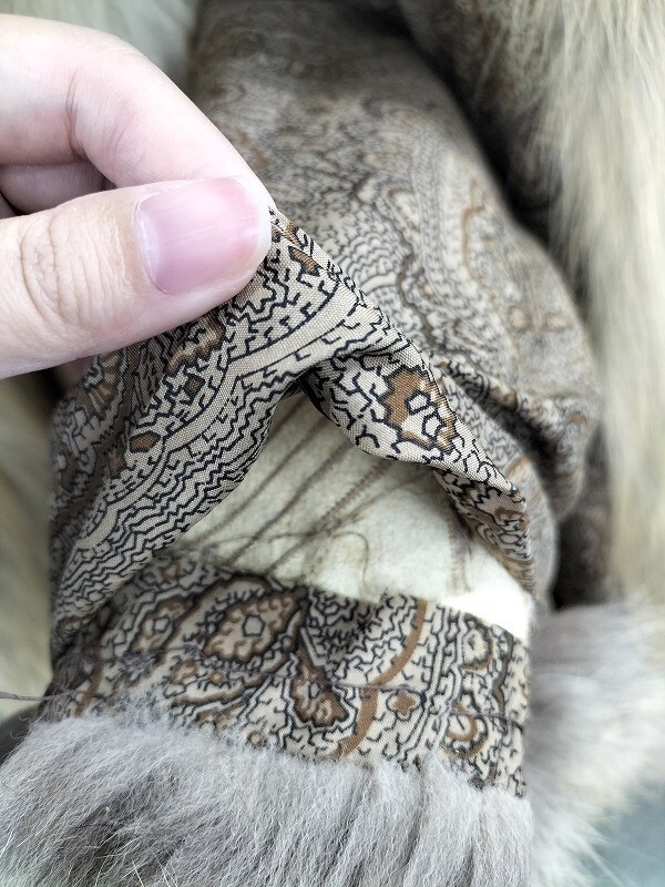 本物の毛皮を使用し、柔らかく暖かな着心地が魅力的☆裏地の一部に破れがございますが、表の毛皮面はきれいな見た目で、まだまだ着ていただける状態です。