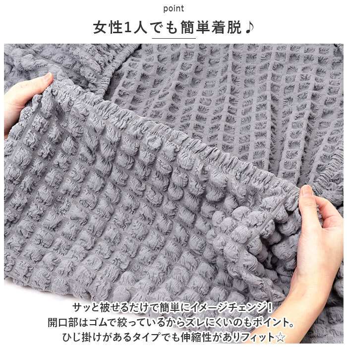 商品説明 | ・・北欧風のデザインが可愛い♪一人がけ用のソファーカバー! ・【女性1人でも簡単着脱♪】 ・サッと被せるだけで簡単にイメージチェンジ!開口部はゴムで絞っているからズレにくいのもポイント。 ・ひじ掛けがあるタイプでも伸縮性がありフィット☆ ・【こだわりのあるデザイン】 ・クシュっとした立体感のある凹凸がアクセント。 ・様々なインテリアに溶け込めるシンプルなカラーなのも魅力的。 ・【オールシーズン仕様】 ・サラッとした手触りのポリエステル生地を採用。蒸れが気になる夏でも使えるオールシーズン仕様。 ・【お子さまやペットのイタズラ対策に】 ・ホコリや傷からカバーしたり、ペットとお子さまのイタズラからソファーを守ってくれる◎ ・汚れても洗濯機で丸洗いができお手入れも楽チン♪ |