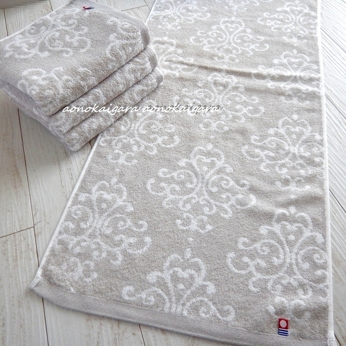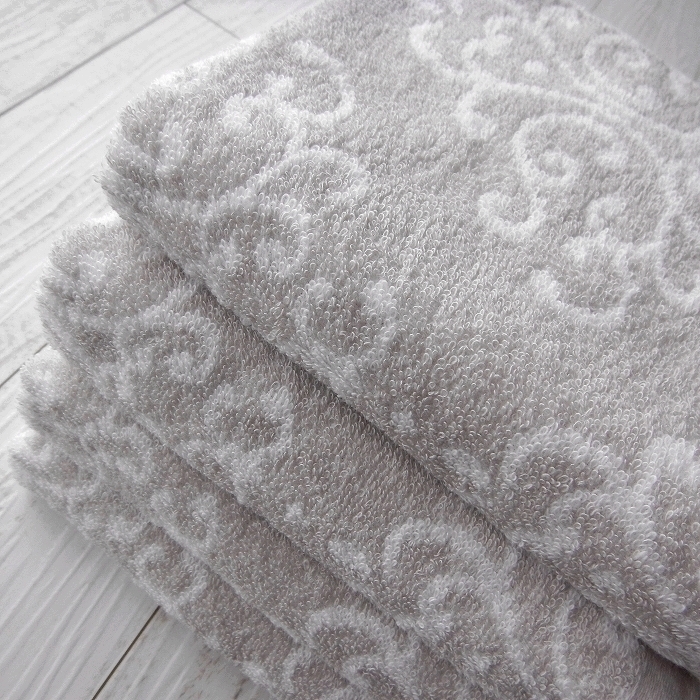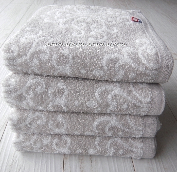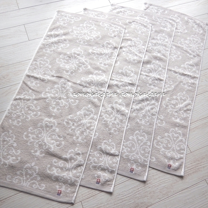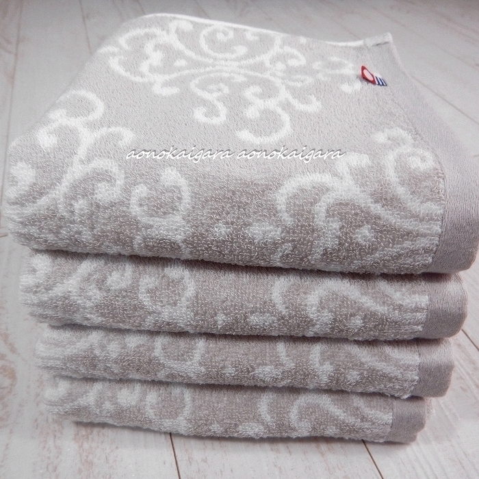 新品◆今治タオル◆甘撚り◆上品◆ふわふわ◆柔らか◆ダマスク柄◆フェイスタオル4枚◆グレー系