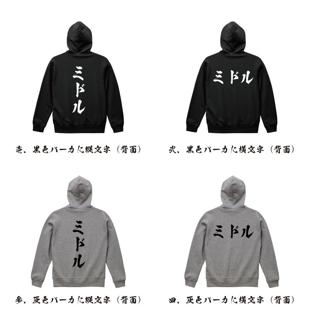 ミドル オリジナル パーカ 書道家が書く プリント フルジップ パーカー S M L XL XXL 110 130 150 【 パチンコ・パチスロ 】