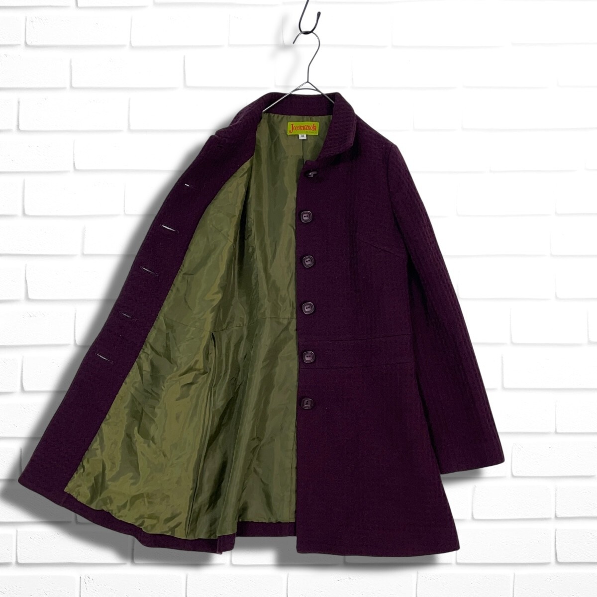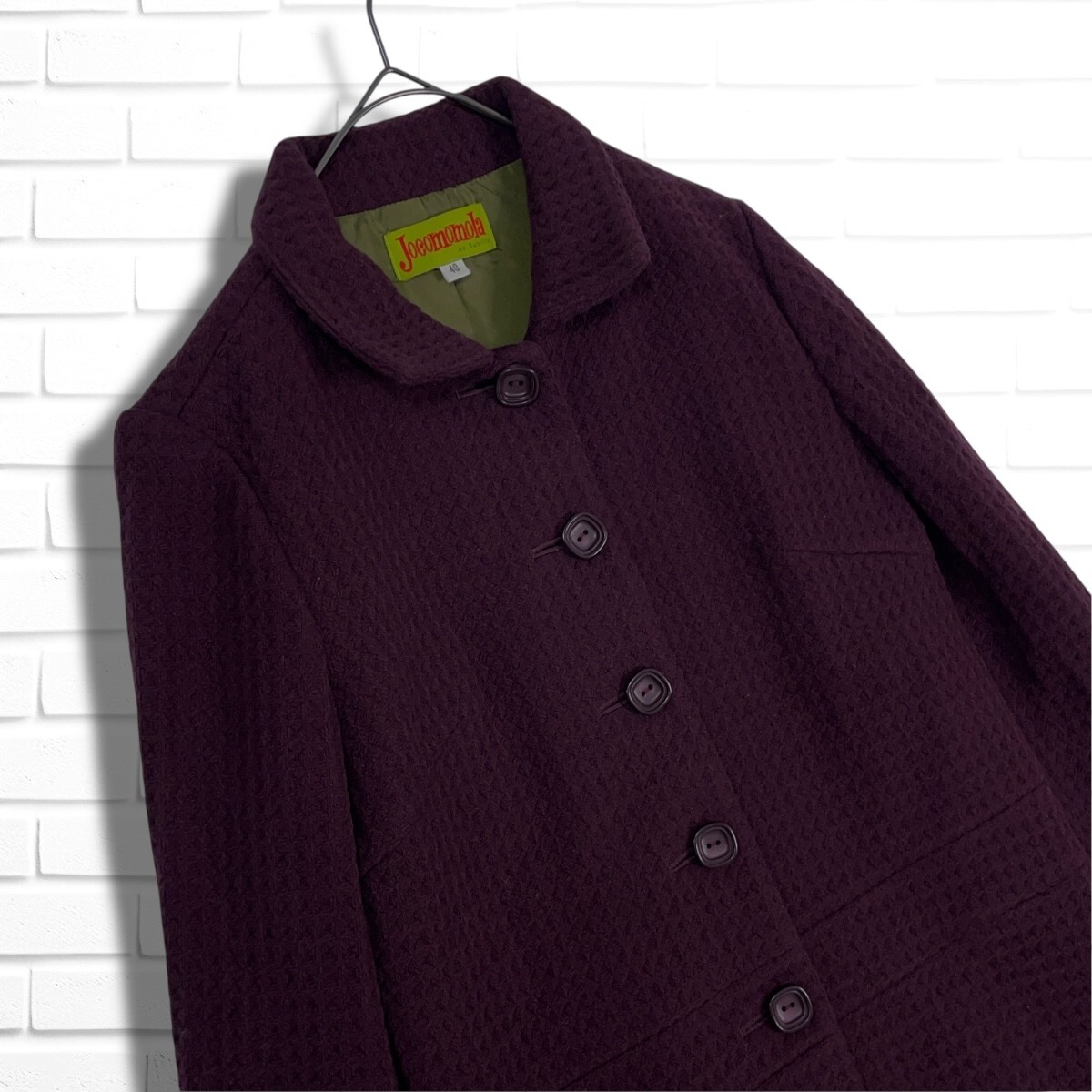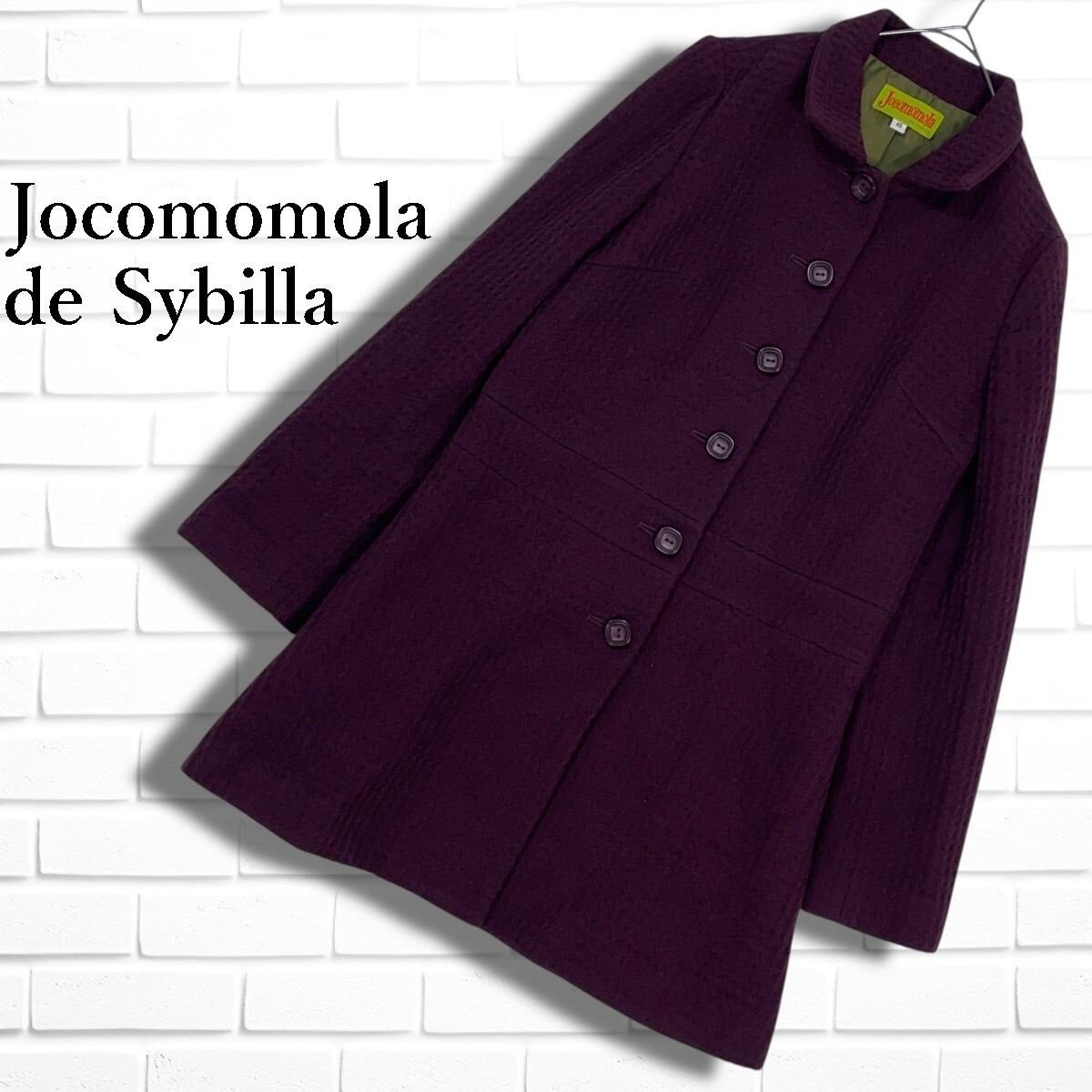 ◆良品◆ Jocomomola Sybilla ホコモモラ シビラ ウール ステンカラー コート ボルドー系 レディース 40 L ◆日本製 送料無料◆ 5615I◇