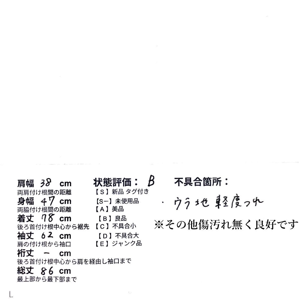 B・・・目立った汚れやダメージのない良品