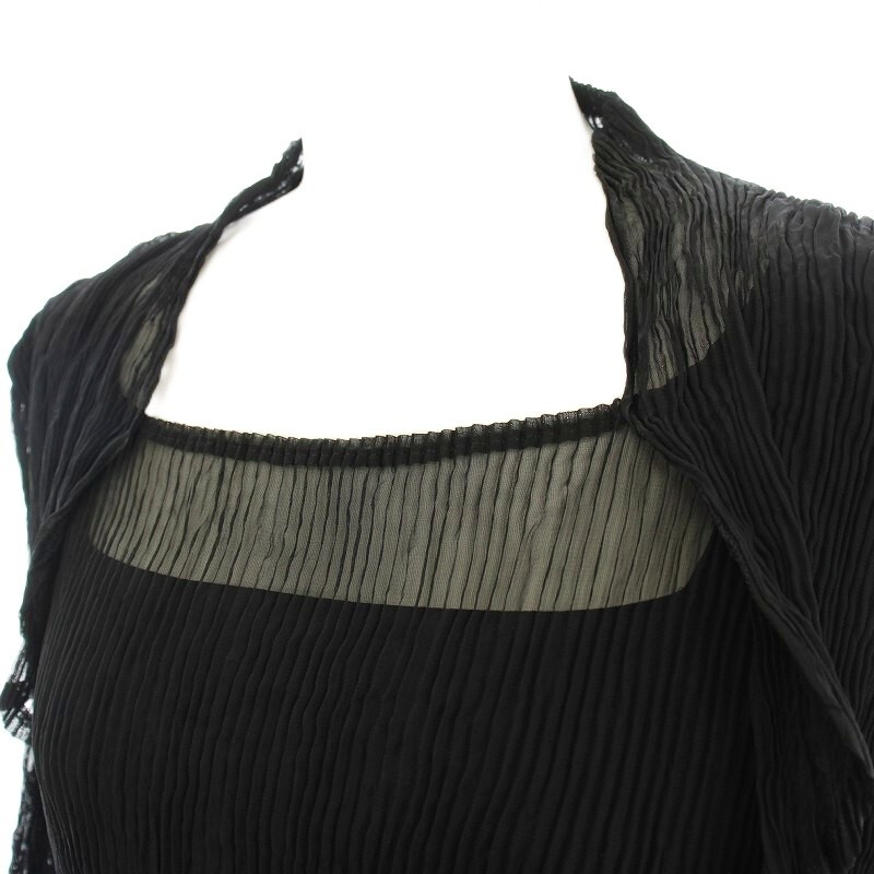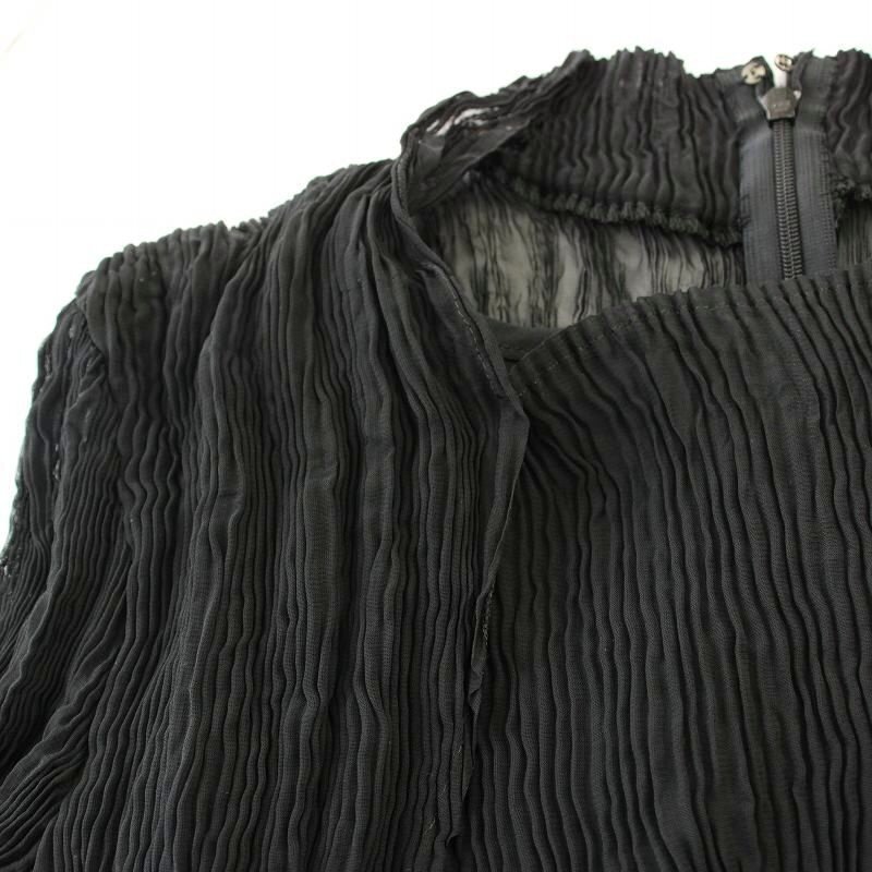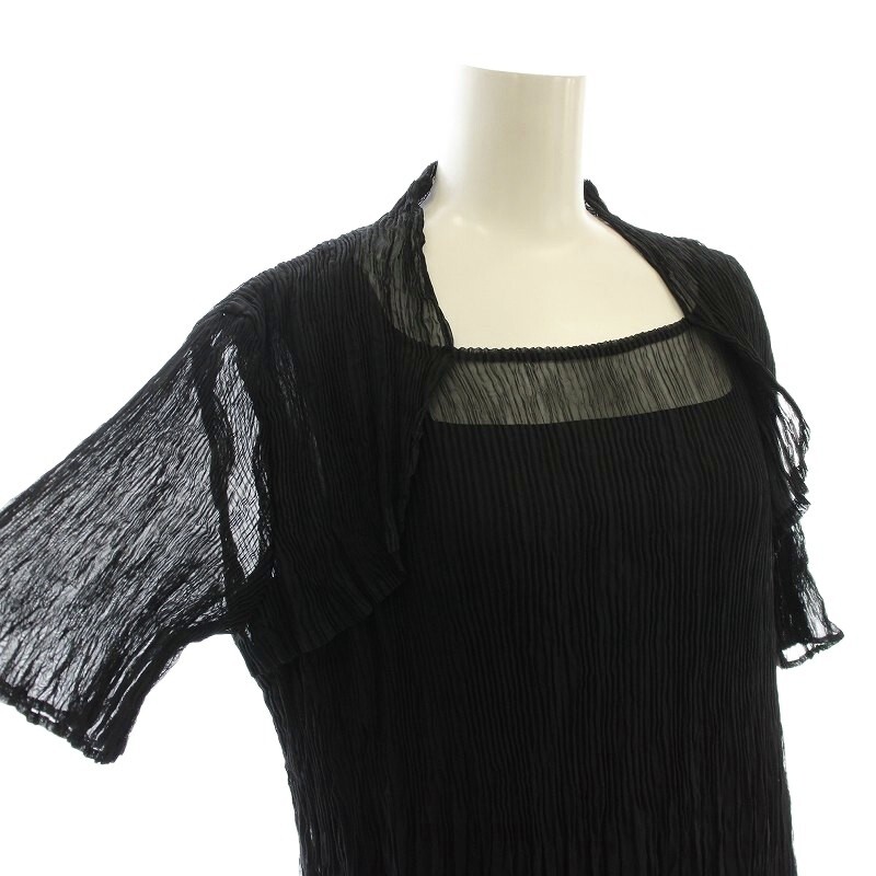 レリアン Leilian シースルー ワンピース 半袖 ロング プリーツ加工 9 黒 ブラック 0480598