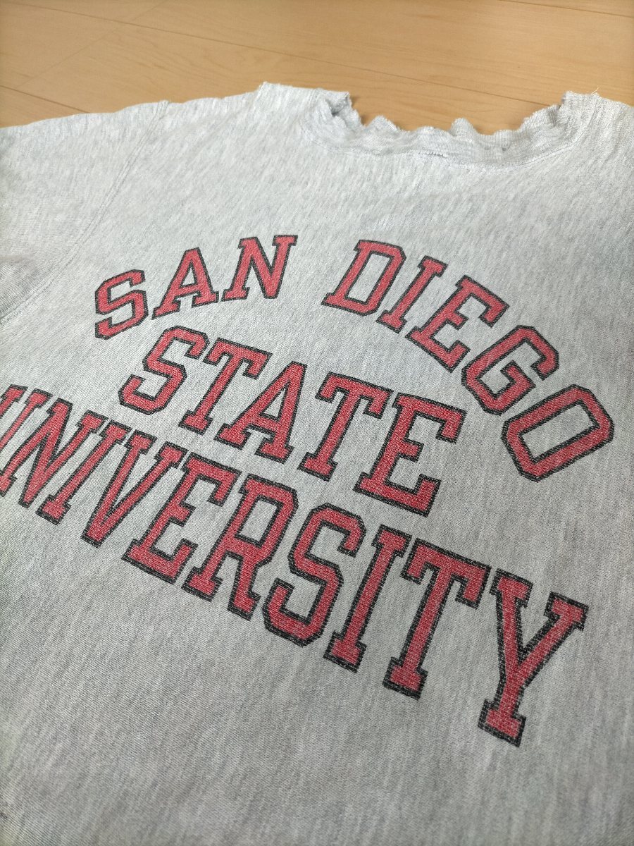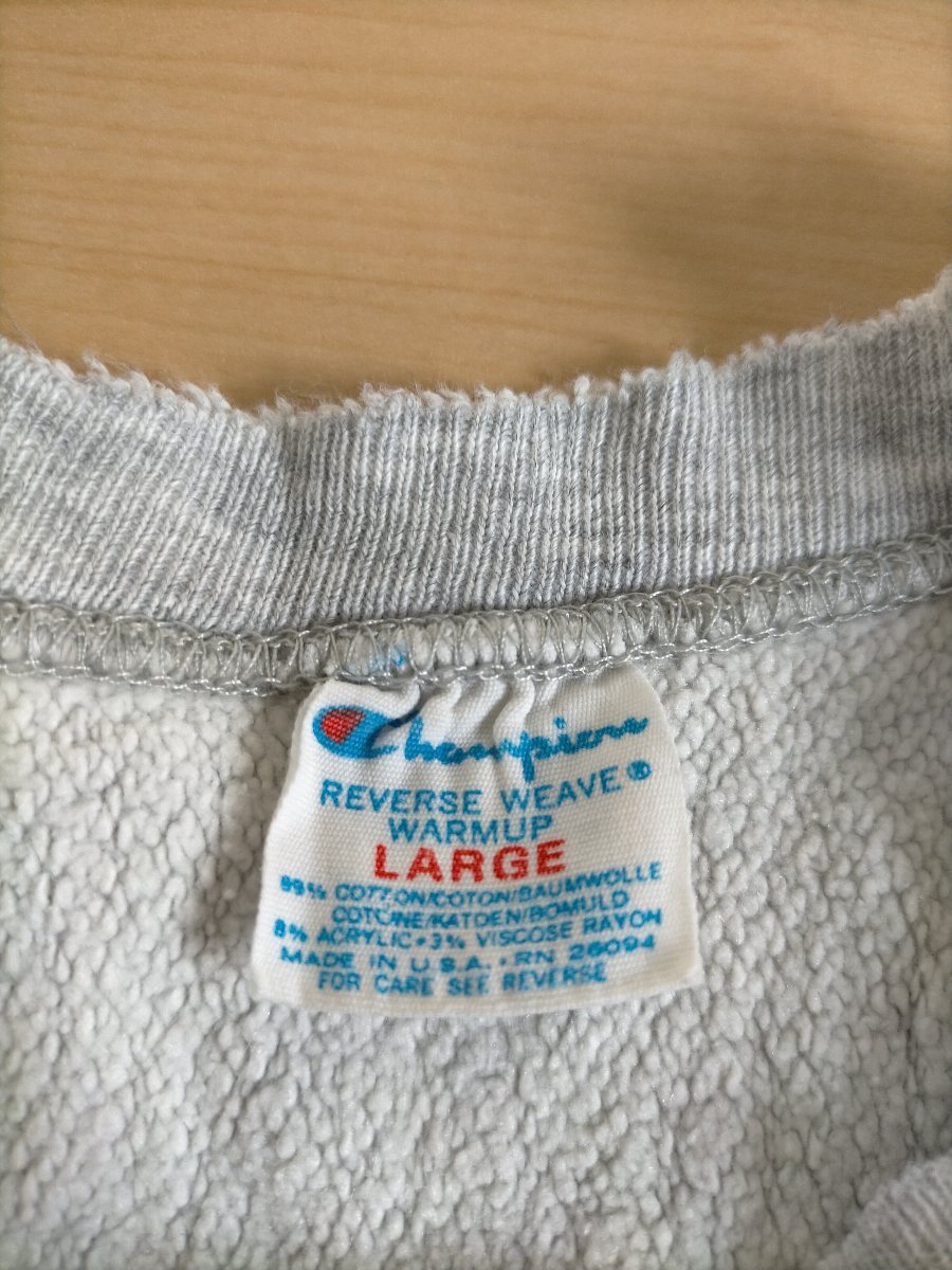 80s USA製 トリコタグ チャンピオン リバースウィーブ 染み込み3段 カレッジ スウェットです。