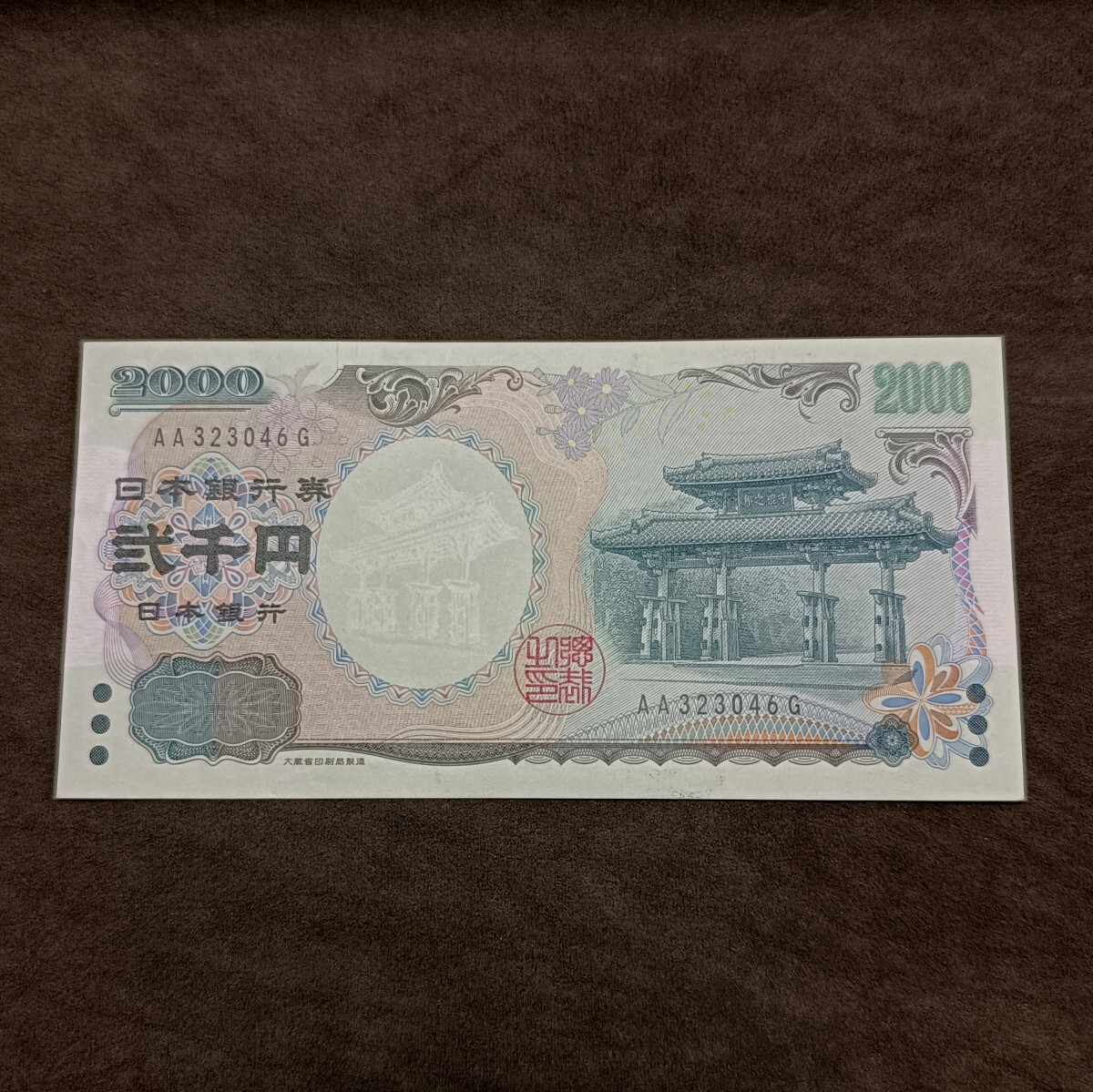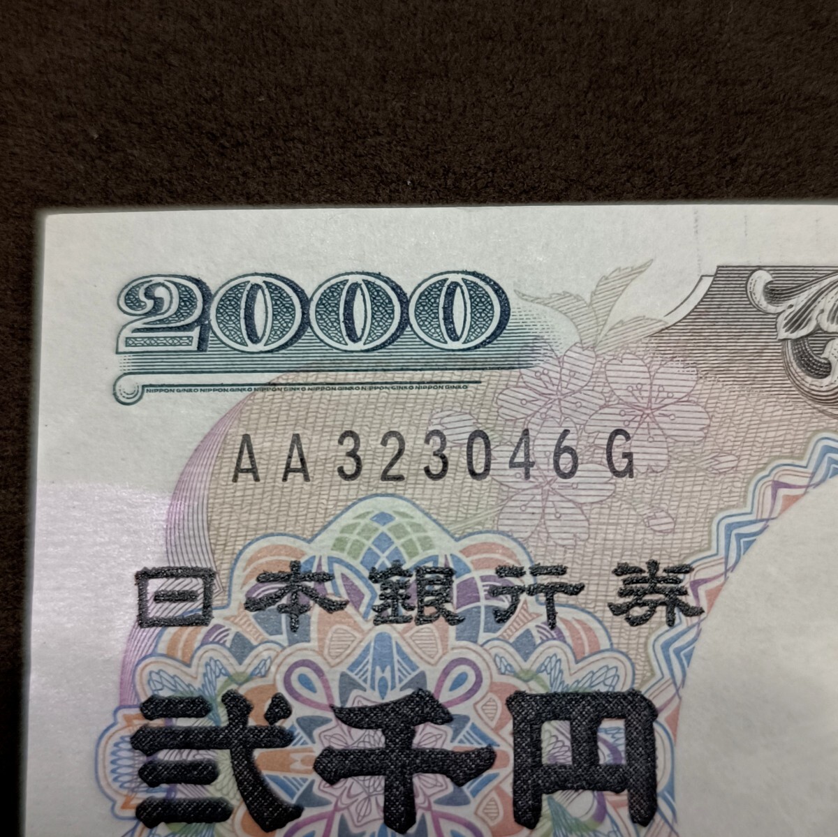 二千円札 2000円札 ピン札 アルファベット AA番 AA323046G