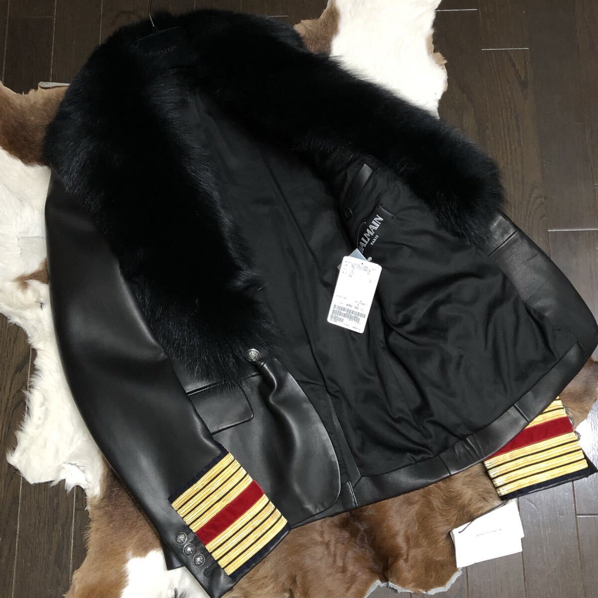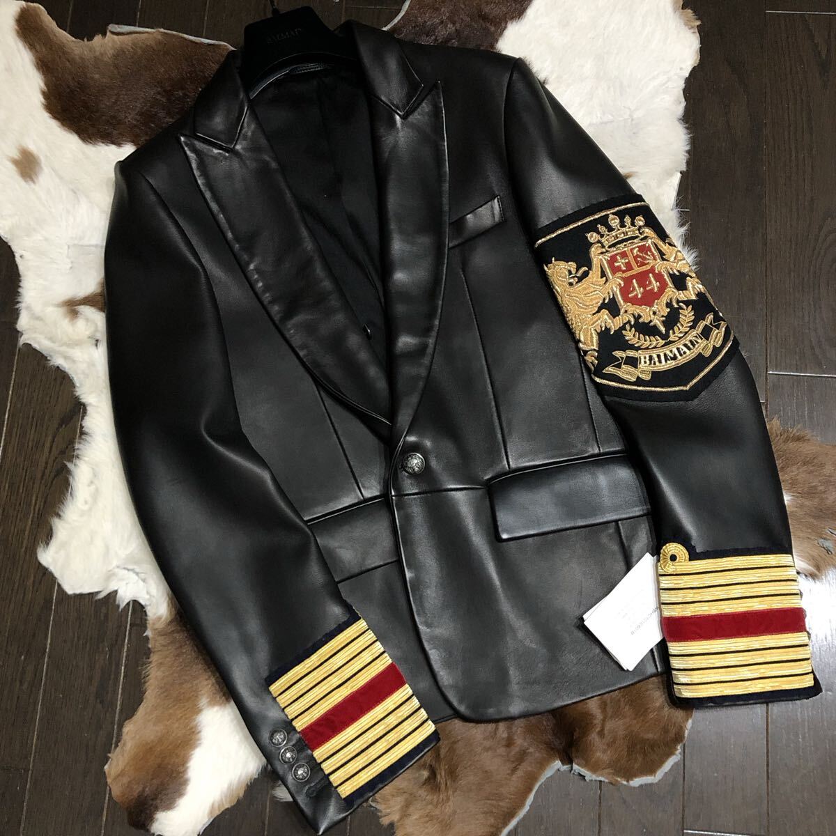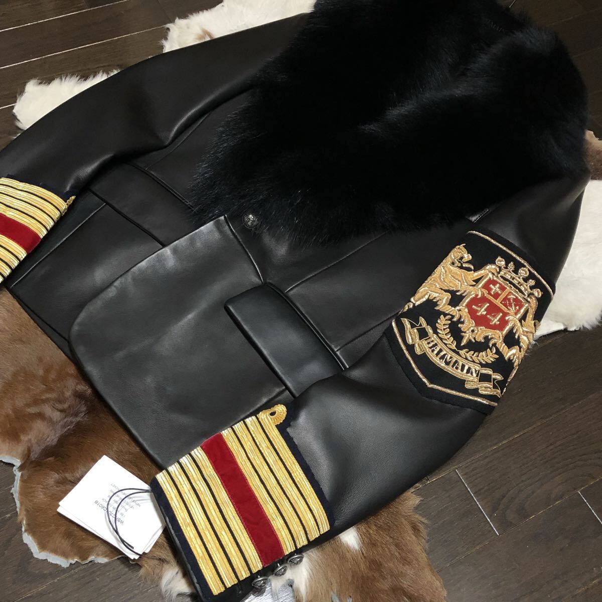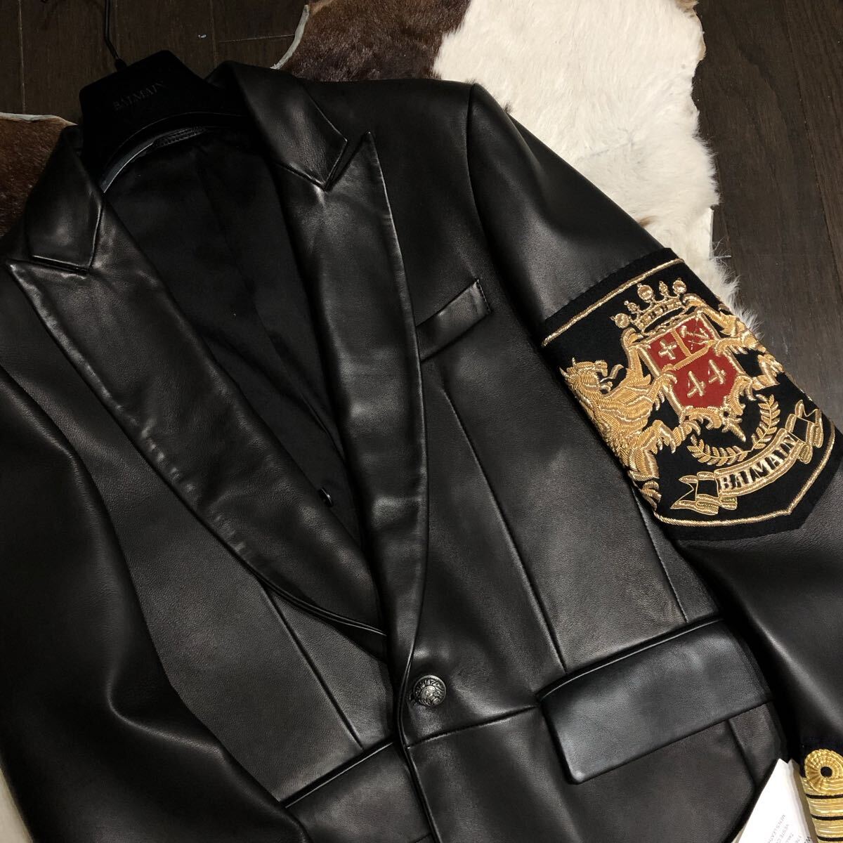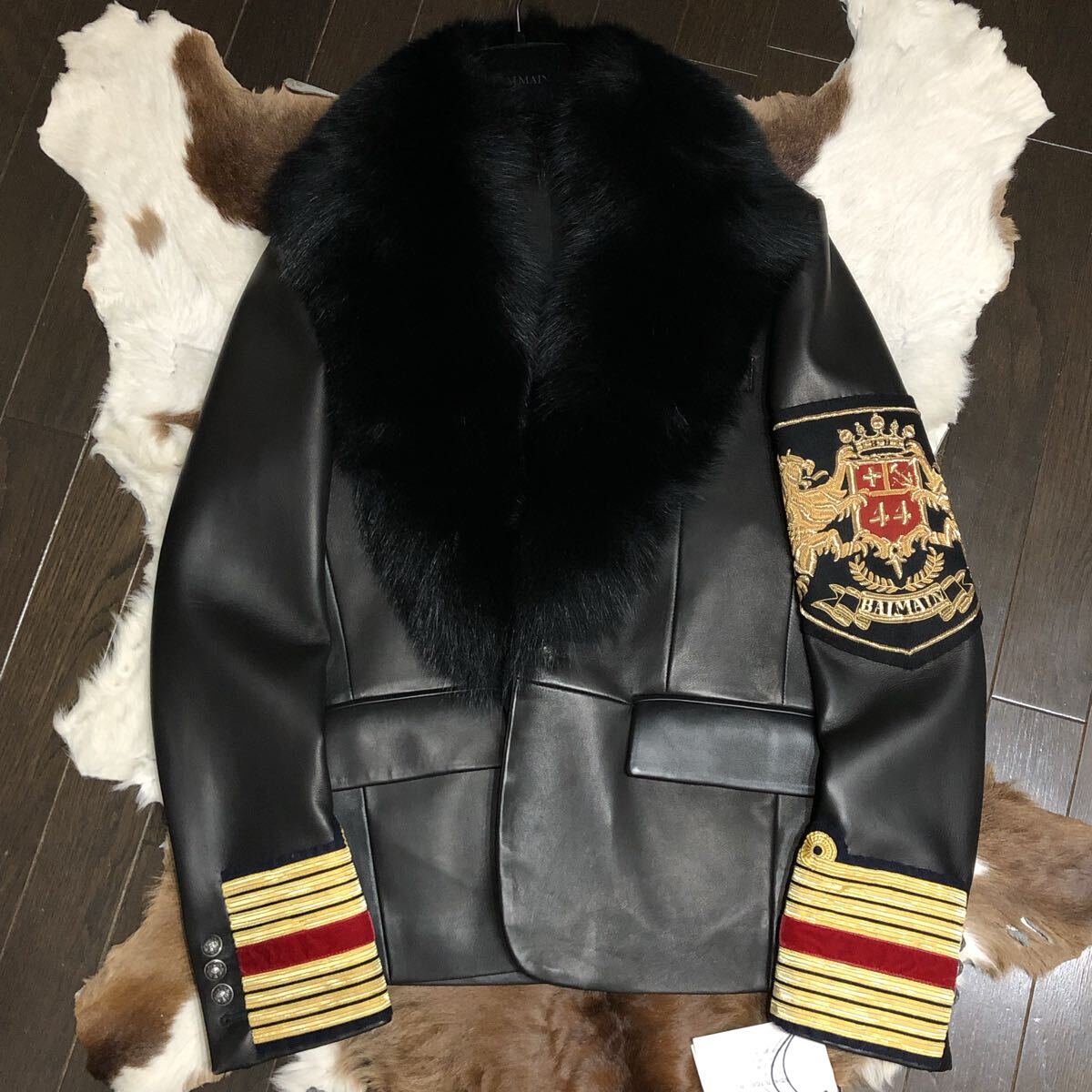 国内正規品 [定価] 95万円 BALMAIN(バルマン) ラムレザー 1Bピークド ジャケット(ファーパッチ付き)メンズ_コレクションライン |