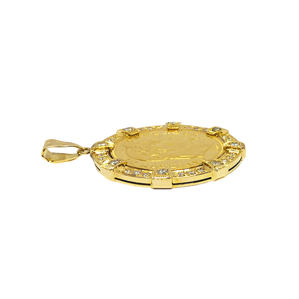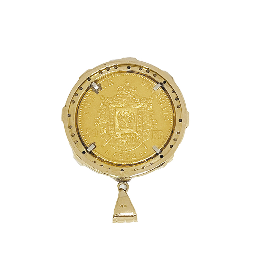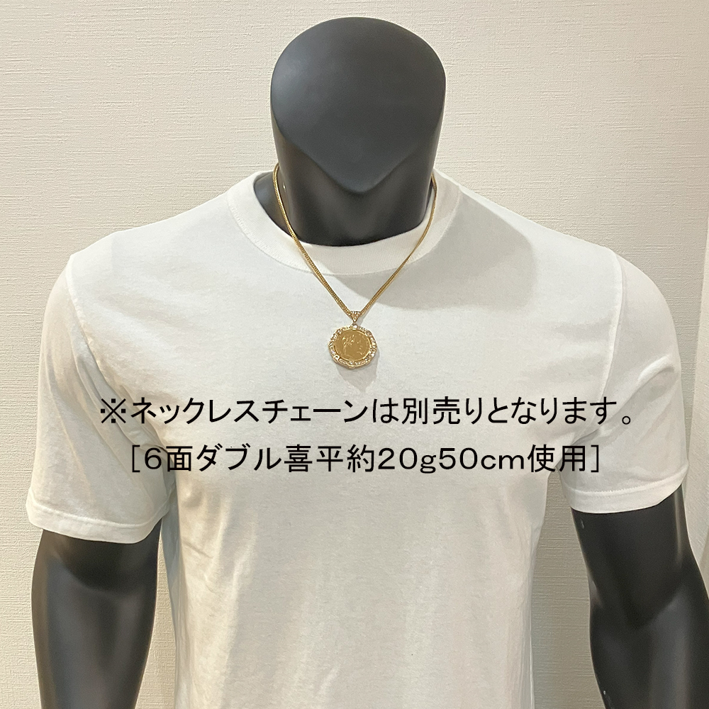 コメント | フランス パリ造幣局発行 ナポレオンIII世 金貨 ダイヤモンド コイン トップが入荷致しました。表面には、月桂冠を被ったナポレオンIII世の横顔、裏面には王冠・2本の剣・イーグルが勇壮さをあらわす貴族の紋章が刻印されています。 ~出品担当の山本より~ 装着すると金貨のゴールドと枠にセットされているダイヤモンドが胸元で豪華に輝きます。普段使いにもご使用いただけます。※装着写真のチェーンは別売です。20g・50cmの6面ダブル喜平ネックレスを使用しています。バチカンは別途料金にて加工も承っており大きくする事も可能です。お気軽にお問合せくださいませ。 | ||