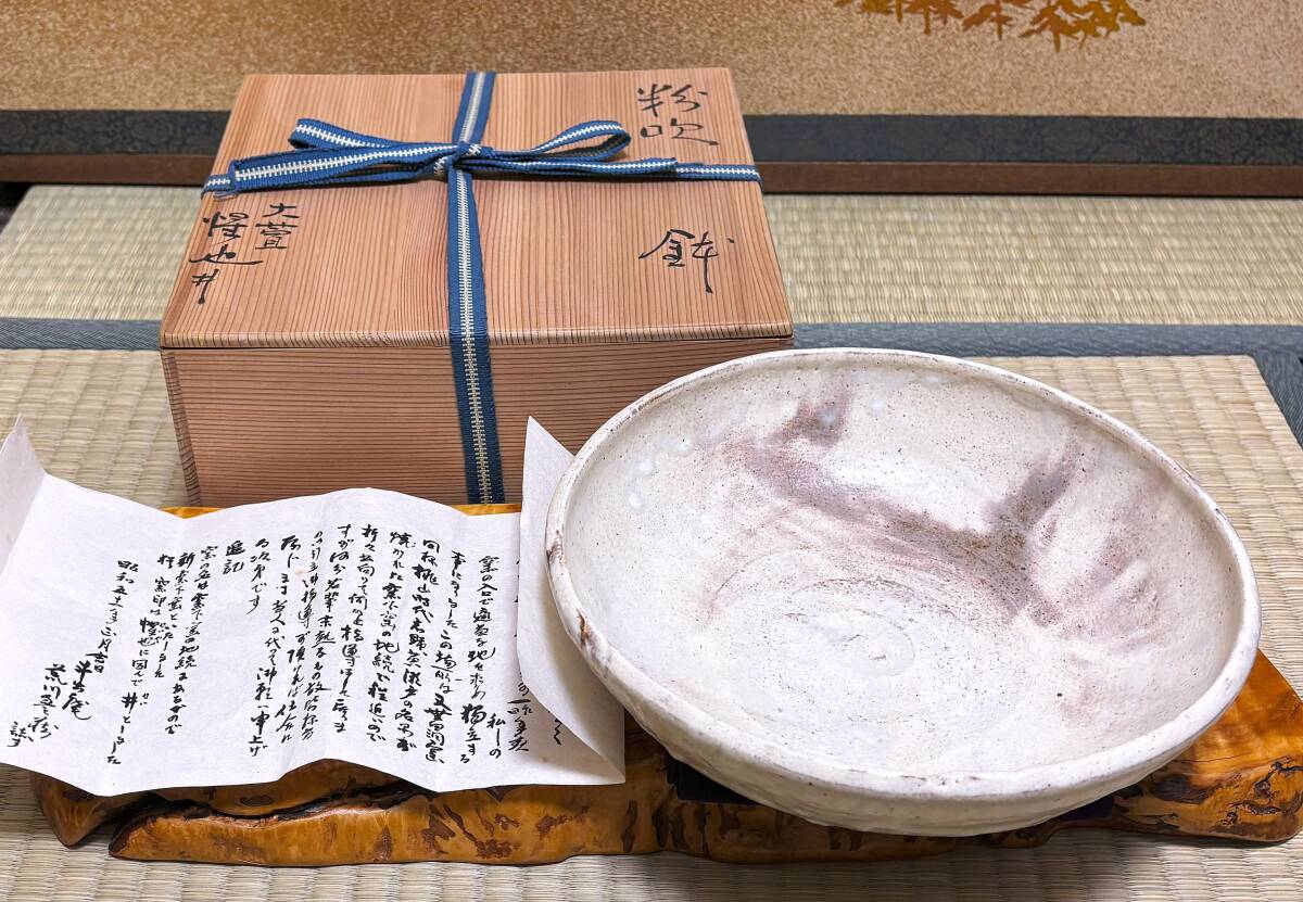 荒川豊蔵の陶業を全て受け継いだ名工の粉吹の中でも雨漏り手は数が限られます。