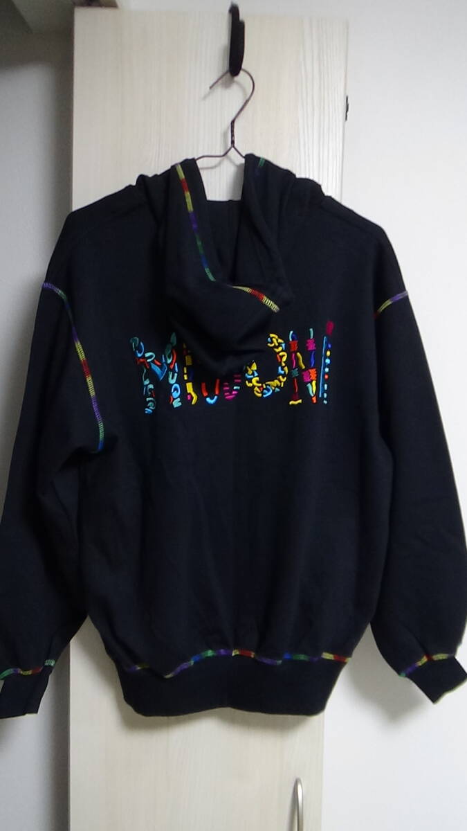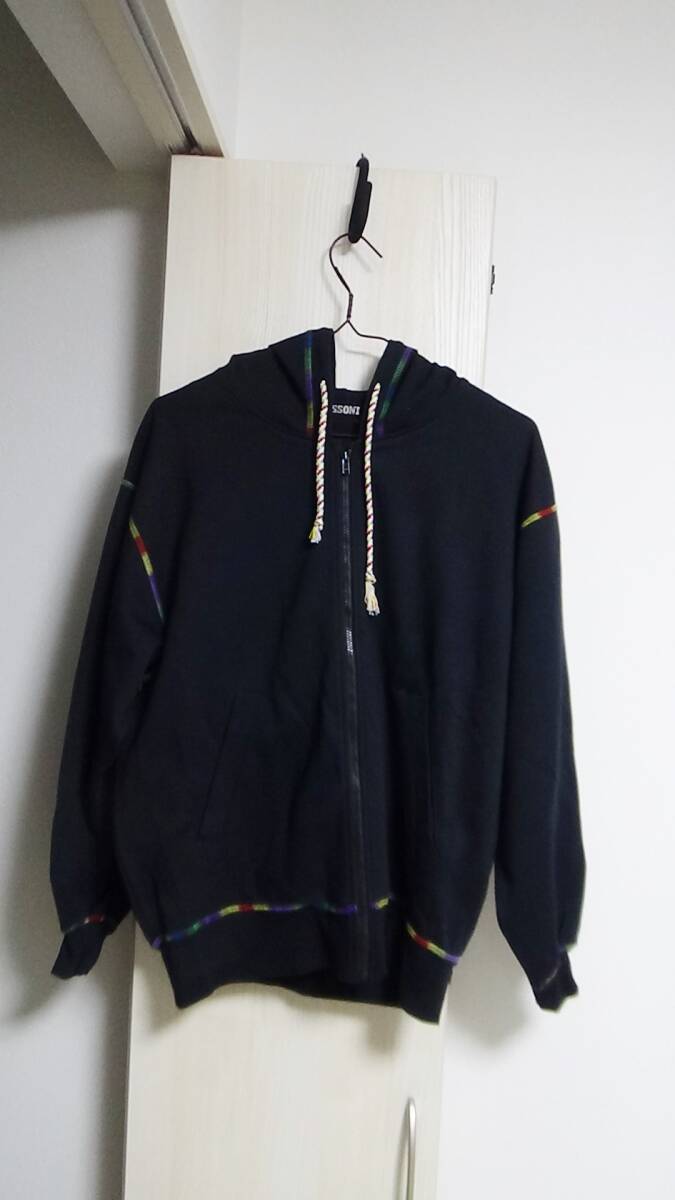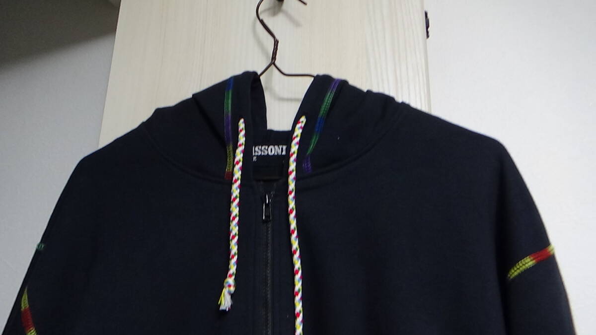 MISSONI MARE (小杉産業製)の品、中古品です。サイズ表記はMで、平置きで身幅52X着丈61Xゆき丈66センチ程度、地の色は黒、綿100、フロントはジップアップ、自宅洗濯可能。ペットなし、たばこなしで着用に難のある汚れ・破れはありませんが素人の中古品につき細かい見落としはご容赦いただき、ノークレームノーリターンにてお願いいたします。他にも出品中です。