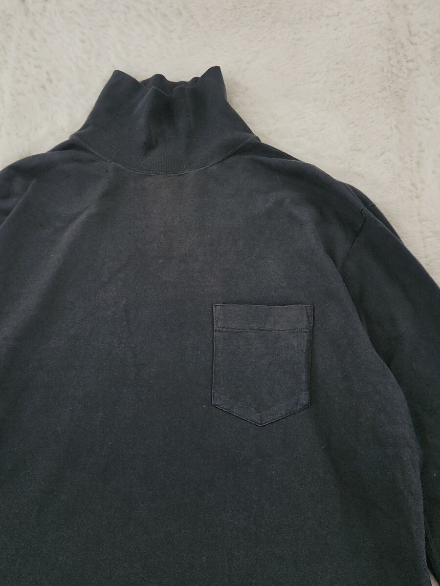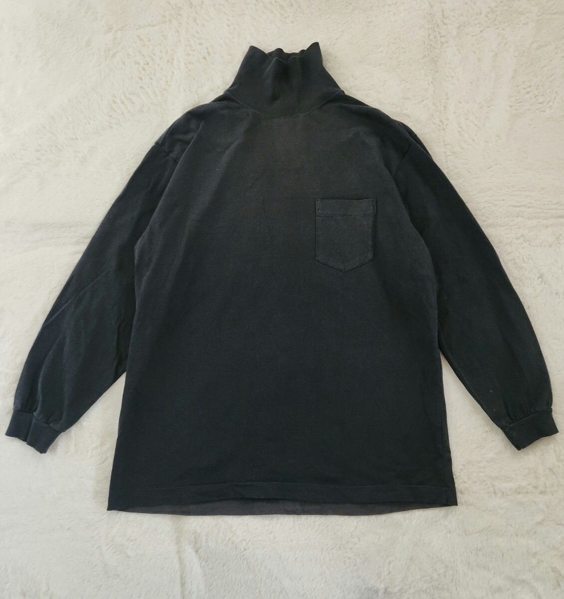 ヴィンテージ ハイネック ロンT 長袖 黒 フェード オーバーサイズ LL シングルステッチ 古着 ストリート グランジ