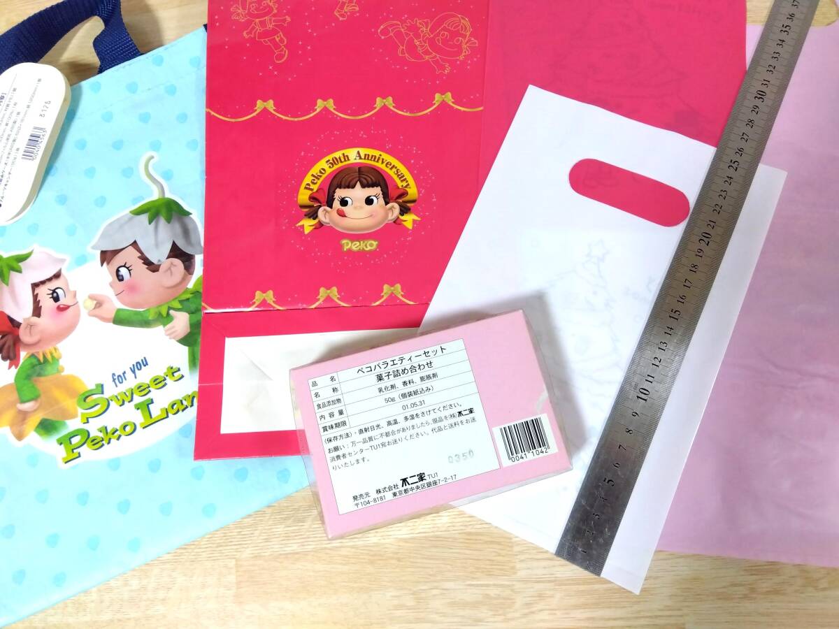 不二家FUJIYA Pekoちゃんのサマーギフトセット手提げ袋、おひな祭り、クリスマス、お誕生50年記念の袋、【賞味期限2001年表記】お菓子空箱のセットです。