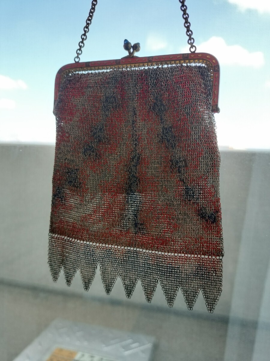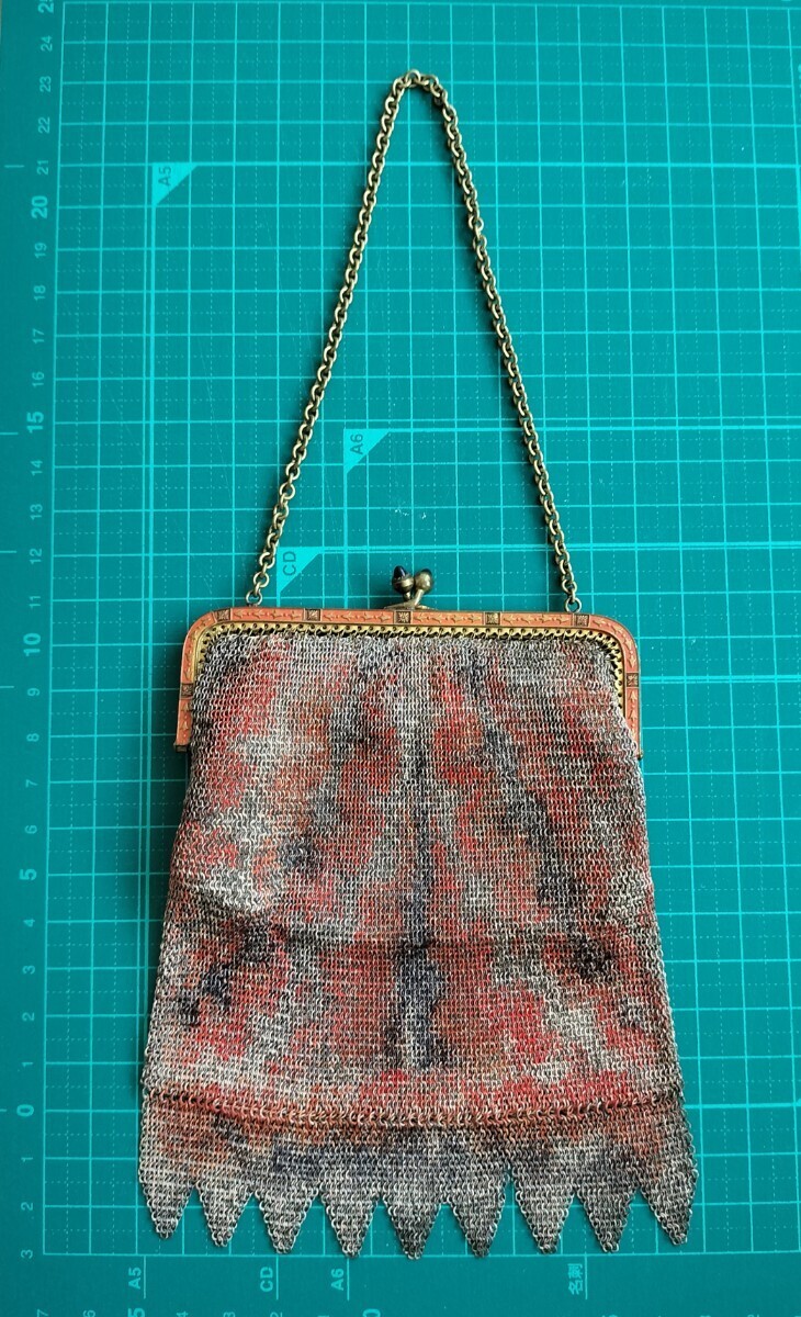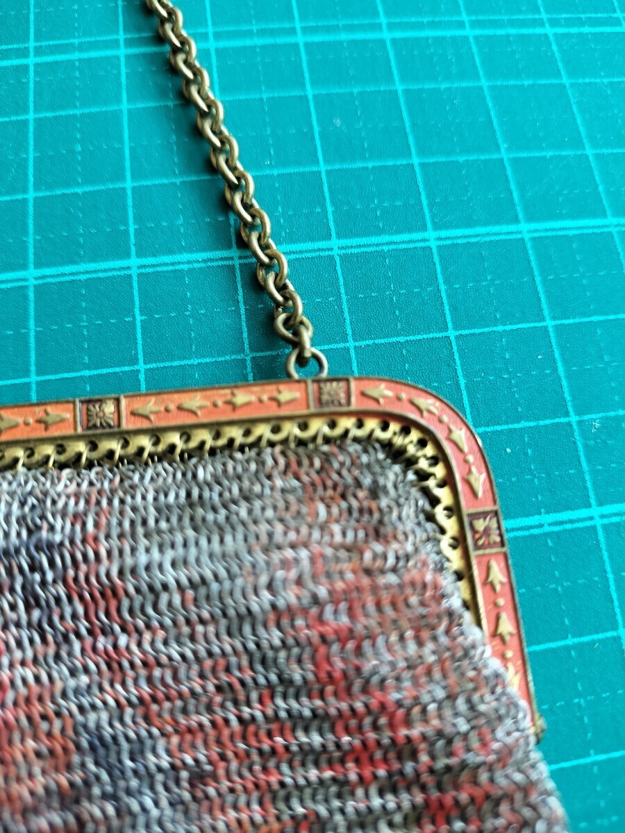 とても小さなチェーンが繋がりメッシュのようになったチェーン付きバッグです。